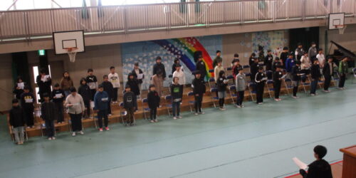 2026年2月27日 6年生を送る会 閉会式 体育館に戻って閉会式。 在校生から感謝の色紙を6年生にプレゼントした後、6年生からは家庭科の時間に作った「雑巾」をプレゼ... カテゴリー 2025年度/日々の活動の様子