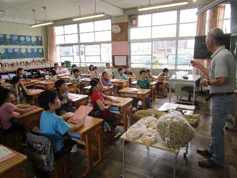 松阪の特産品の一つである松阪牛の学習で3年生は、飯南町在住の肥育農家、森本さんに来校していただき、話を聞きました。