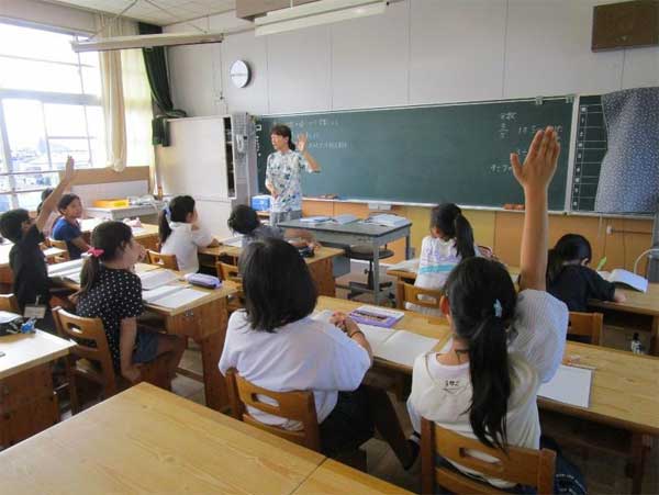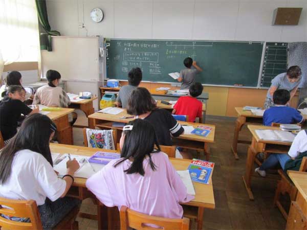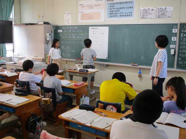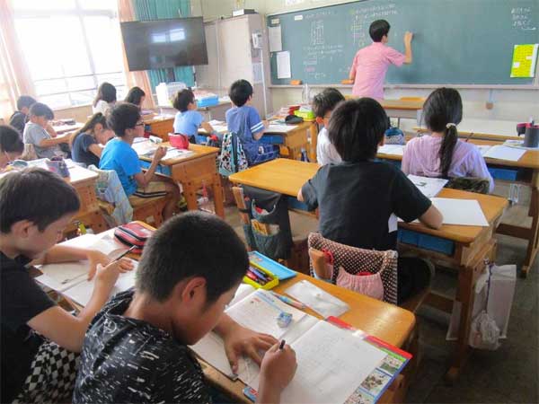 松江小学校まつえしょうがっこうでは、算数科さんすうかにおいて4年生と5年生はきめこまやかな指導しどうとどくようにクラスの人数にんずう半分はんぶんずつにして担任たんにんともう一人ひとりの担当が授業じゅぎょうおこなっています。
