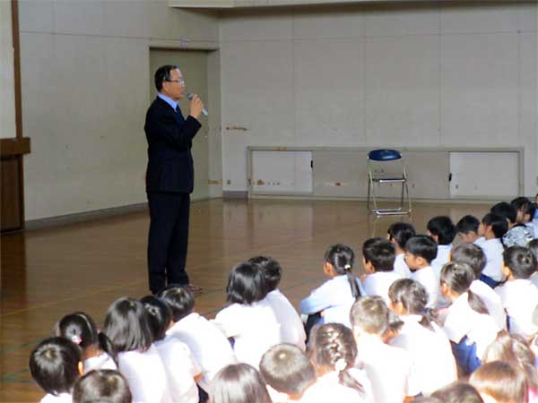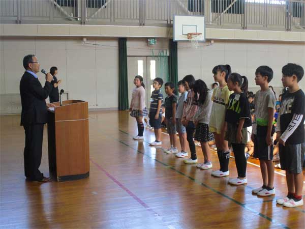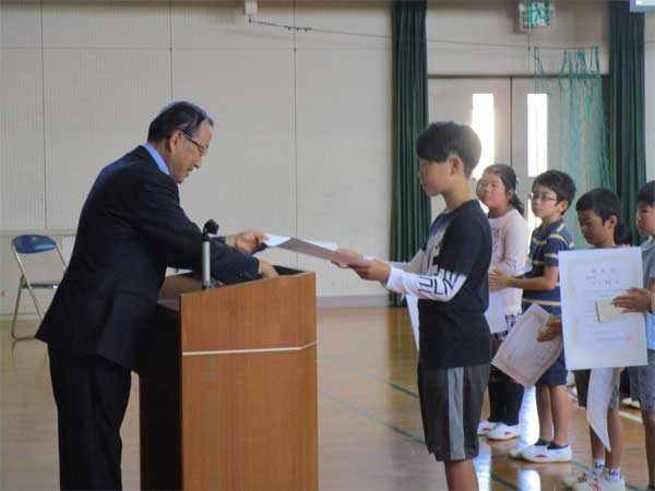 毎年、同窓会会長の奥村様より、子どもたちの読書の励みとなるように読書感想文校内優秀賞の子どもたちに賞状と記念品をいただいております。
