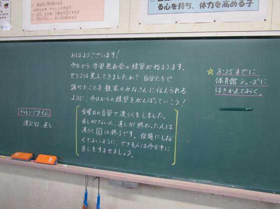 こうやって、毎朝先生から子どもたちへのメッセージが黒板に書かれています。