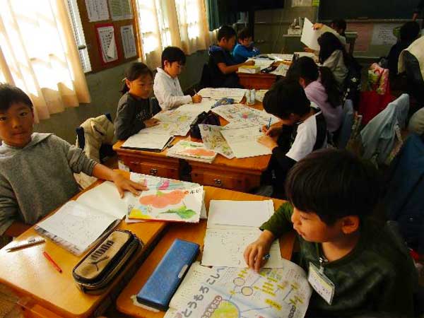 たとえば、3年生では、国語科こくごか「すがたをかえる大豆だいず」では説明せつめい工夫くふう仕方しかたまなび、現在げんざい、次の単元たんげんもののひみつをおしえます」では、自分でめた食品しょくひんれいにあげて作文さくぶんし、説明せつめいをしようと学習しています。