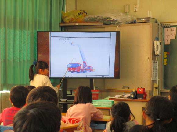 いろいろなはたらく車の「しごと」とそのためにその車がどんな「つくり」になっているのかを考える学習でした。しっかり見て、話して、聴いて、書いていました。