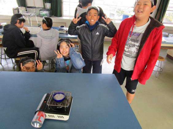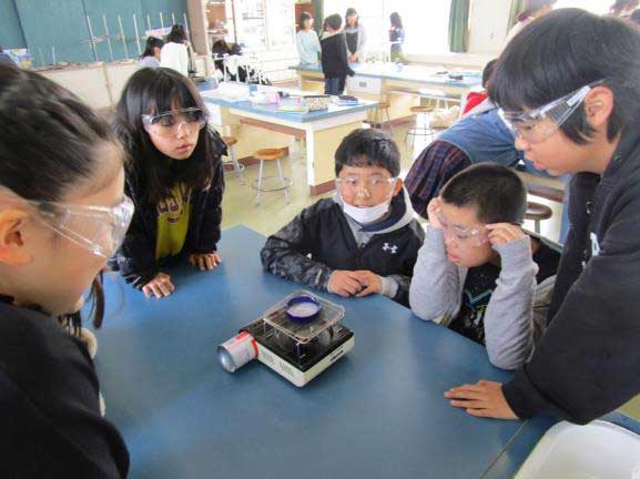 食塩水を加熱し、水を蒸発させるとどうなるか実験していました。みごとにたくさんの食塩だけが、取り出せました。