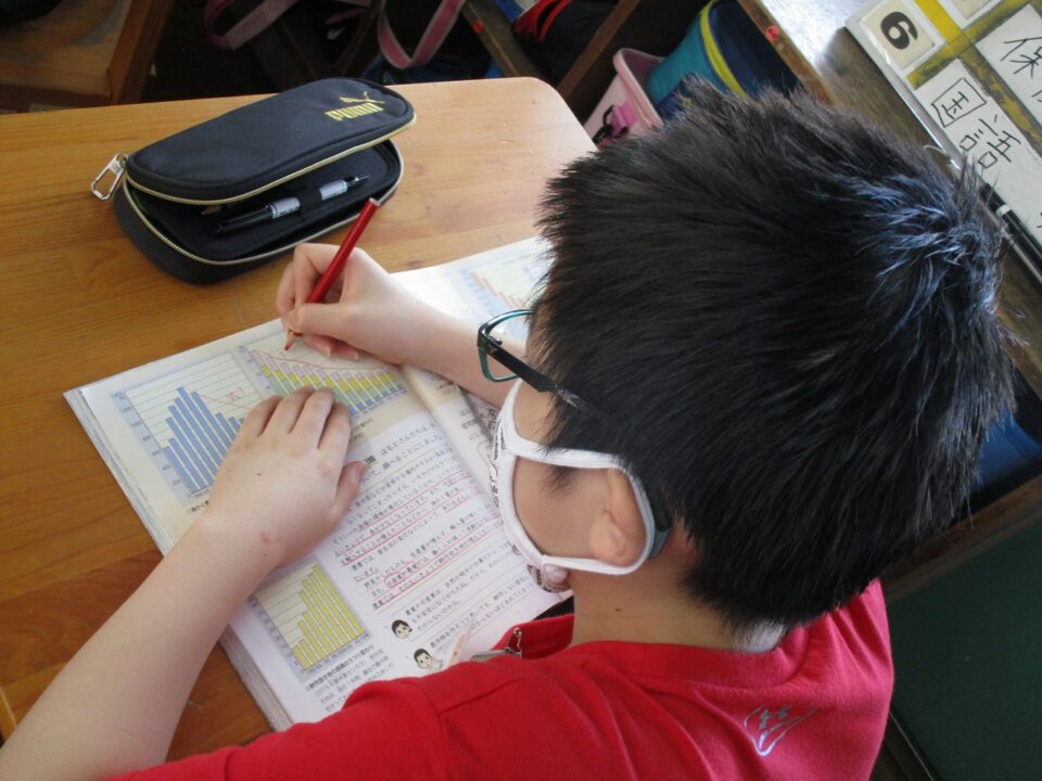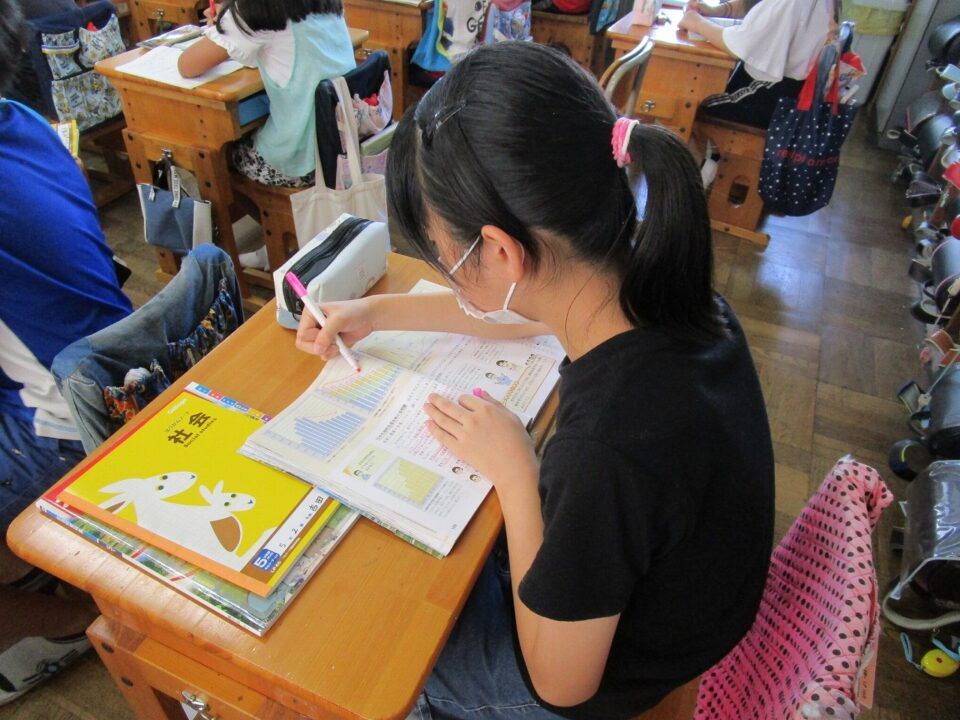 ちょうど、5年生の社会科で資料を読み取る学習をしていました。