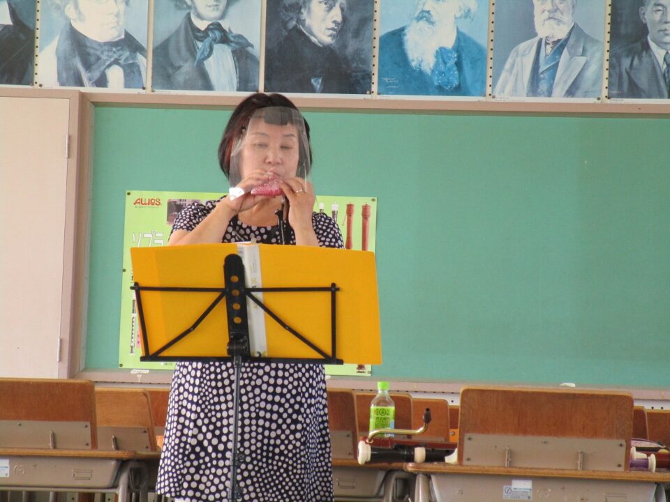 3年生は、音楽の時間にタンギングの練習をしっかりしてあるので、高野谷先生からは「とても上手にタンギングができているね」と褒めていただきました。