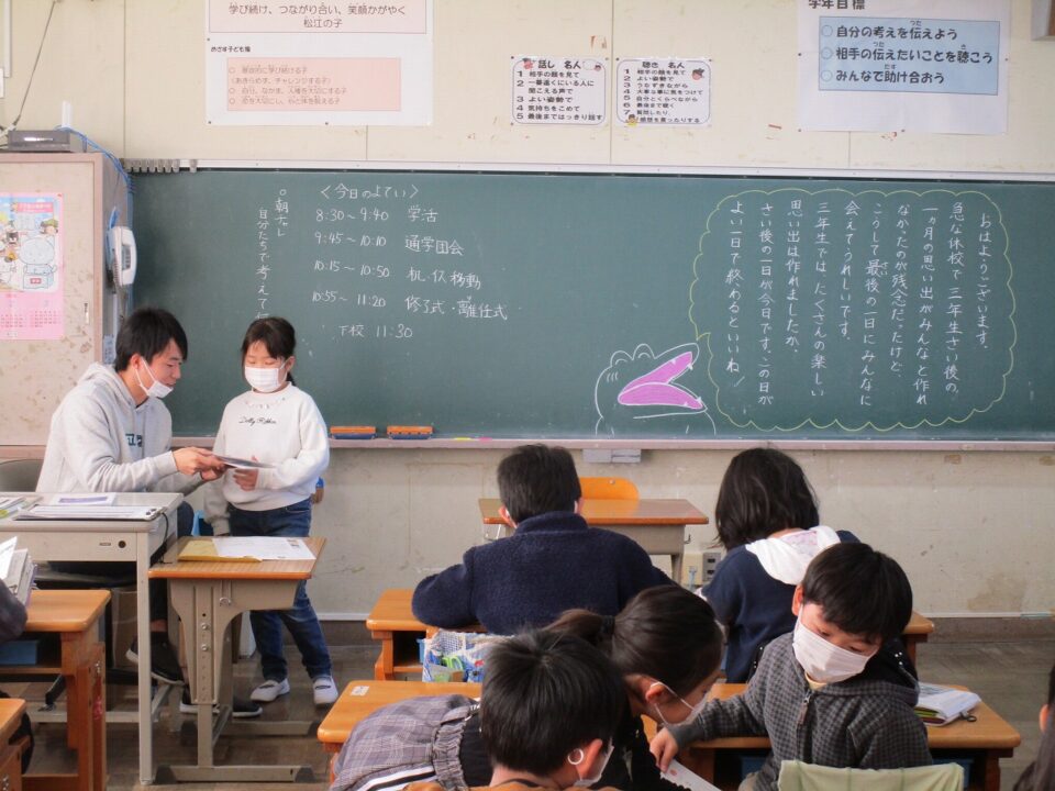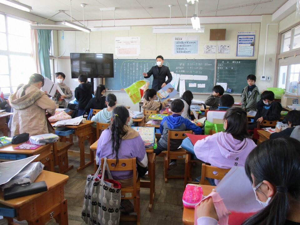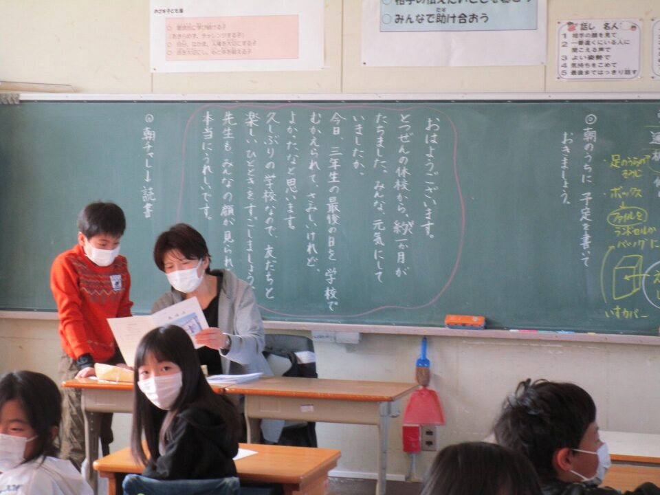 友だち、離任の先生方13人と別れを惜しみながら、下校していきました。