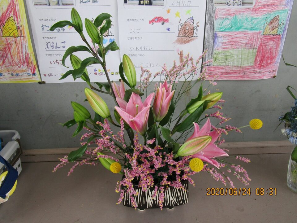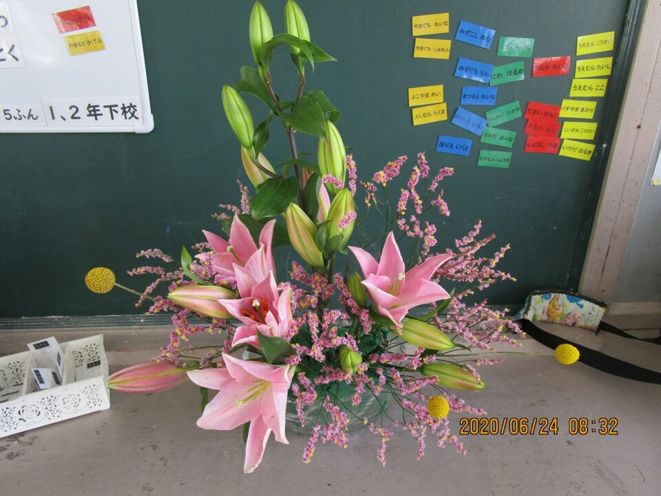 2年生の教室には、昨日まちたんけんで「いずみ」さんにもらってきた花がかざられていました。