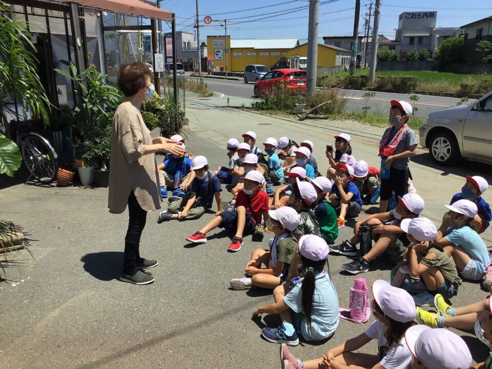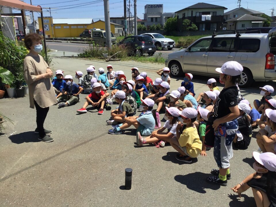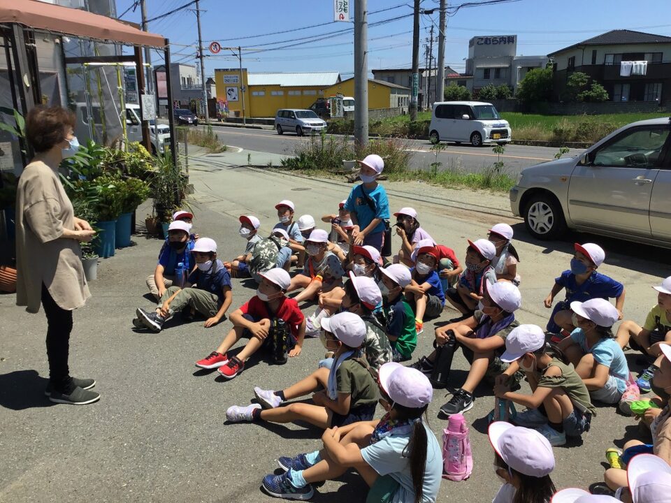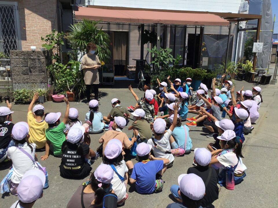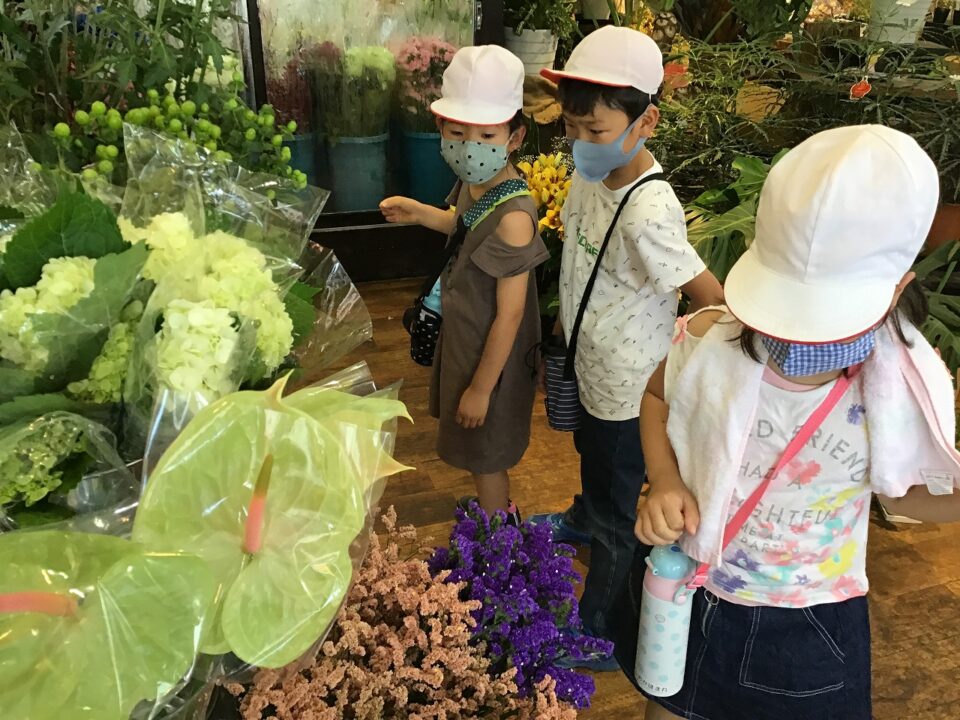 「いずみ」花屋はなやさんでは、おはなしかせていただき、どもたちのたくさんの質問しつもんにも丁寧ていねいこたえていただきました。かえりには、おはなもいただきました。