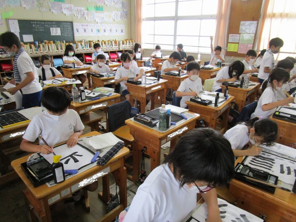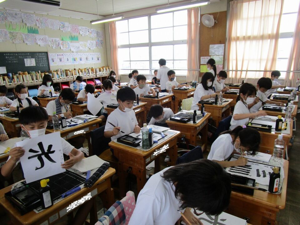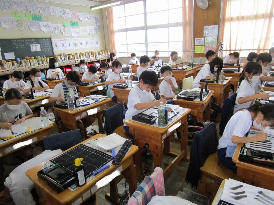 4年2組は、書写で毛筆でした。「光」という字の練習でした。どの子も真剣です。
