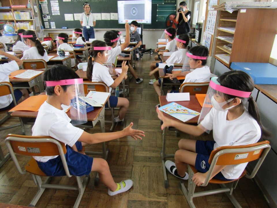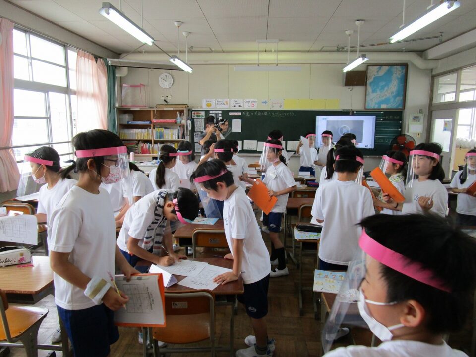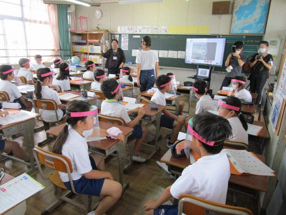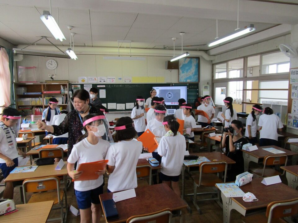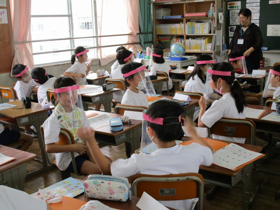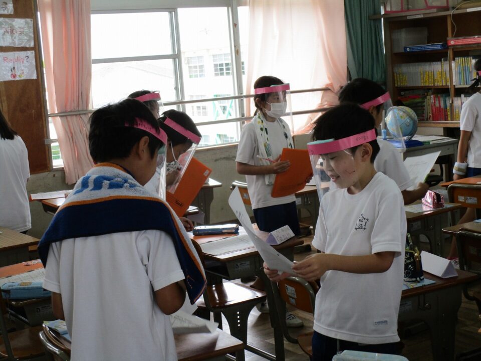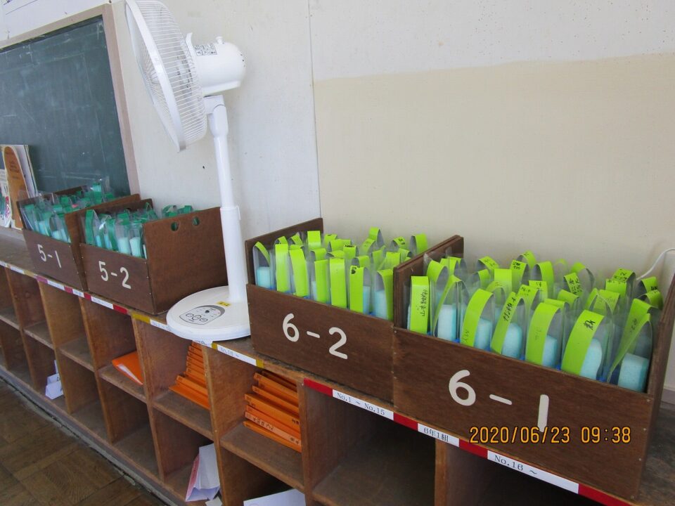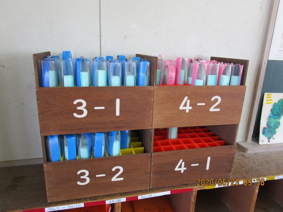 終わったら口にあたる部分を内側にくるくる巻き、校務員の三井さん手づくりの箱にシールドをしまいます。