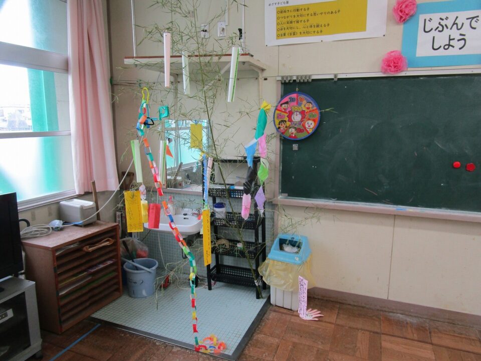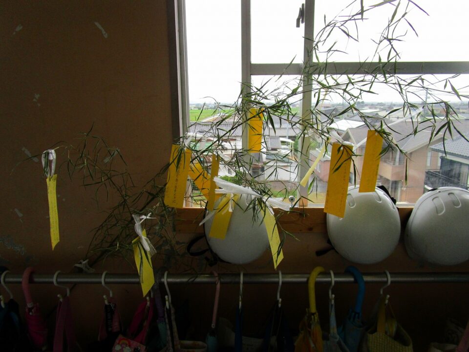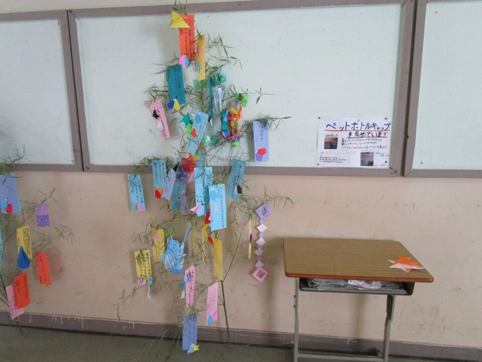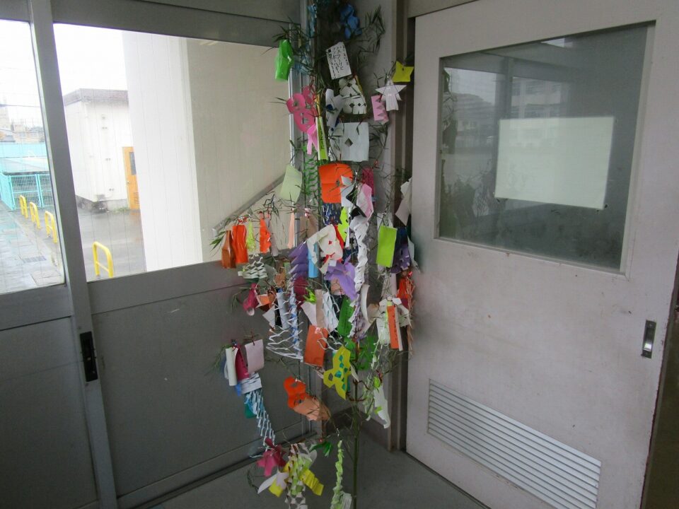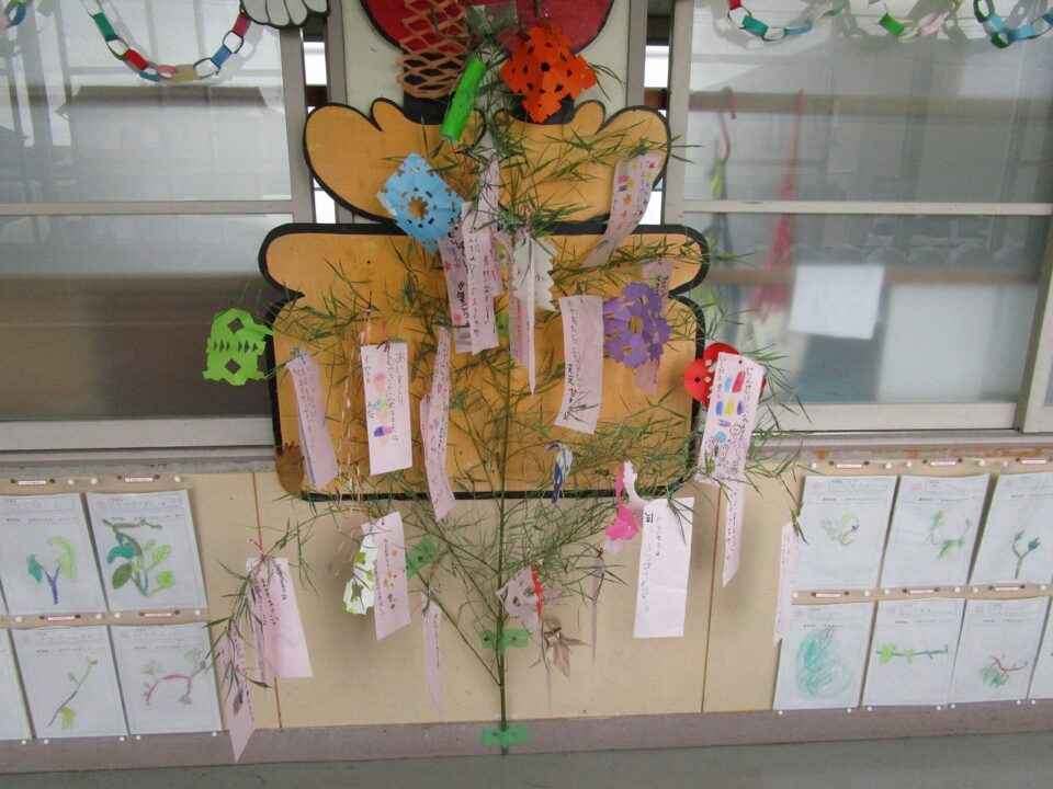 各クラスで願いを短冊に書いてつるしたり、笹飾りを作って飾ったりしていました。