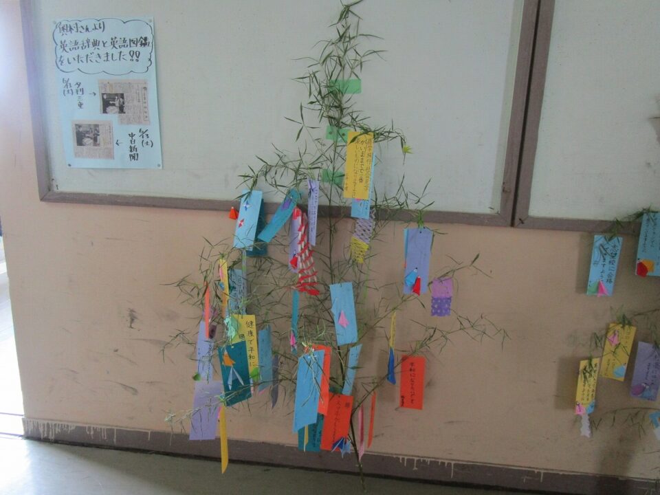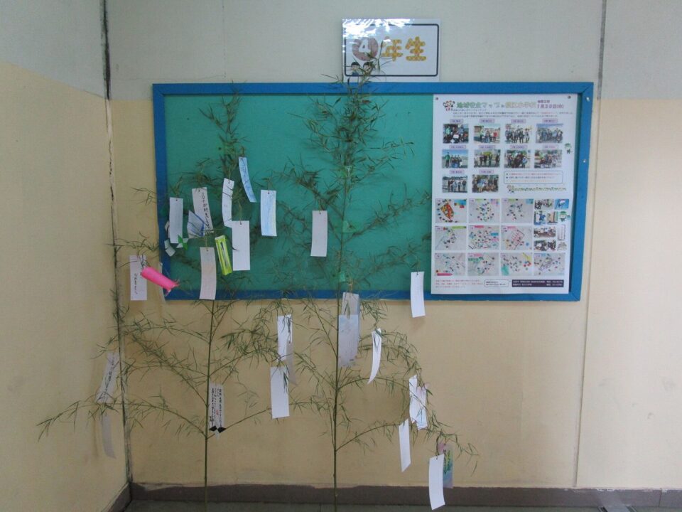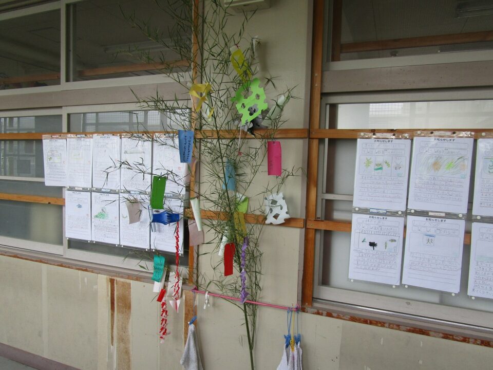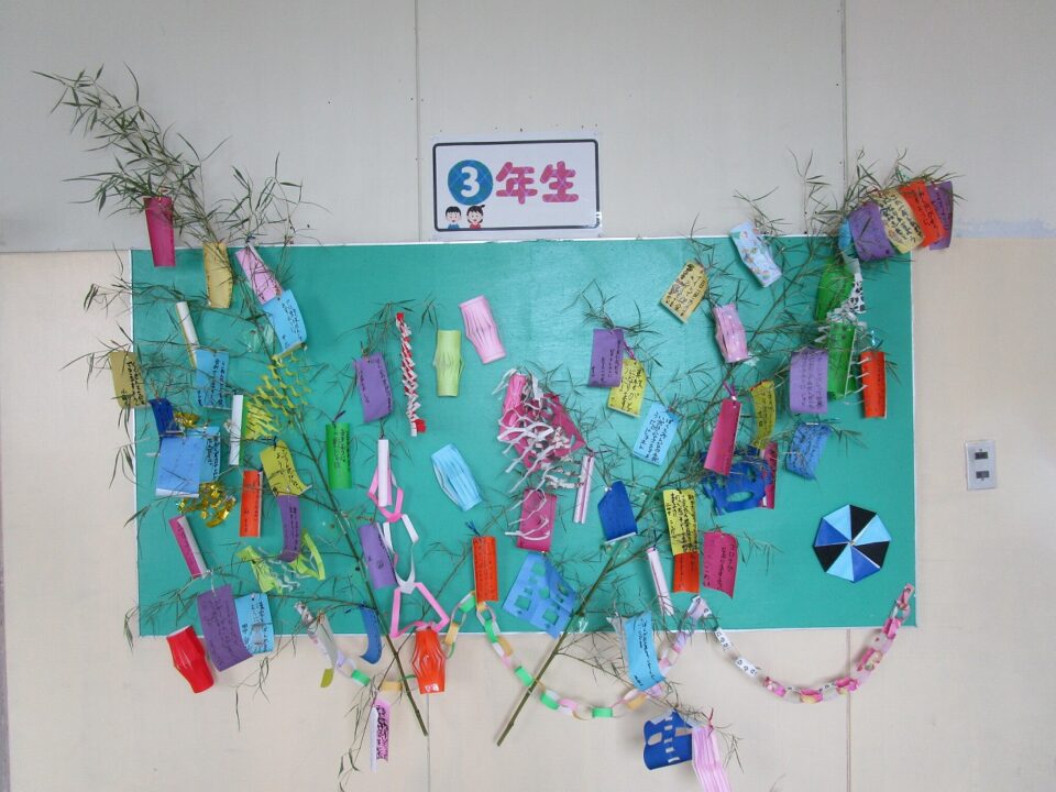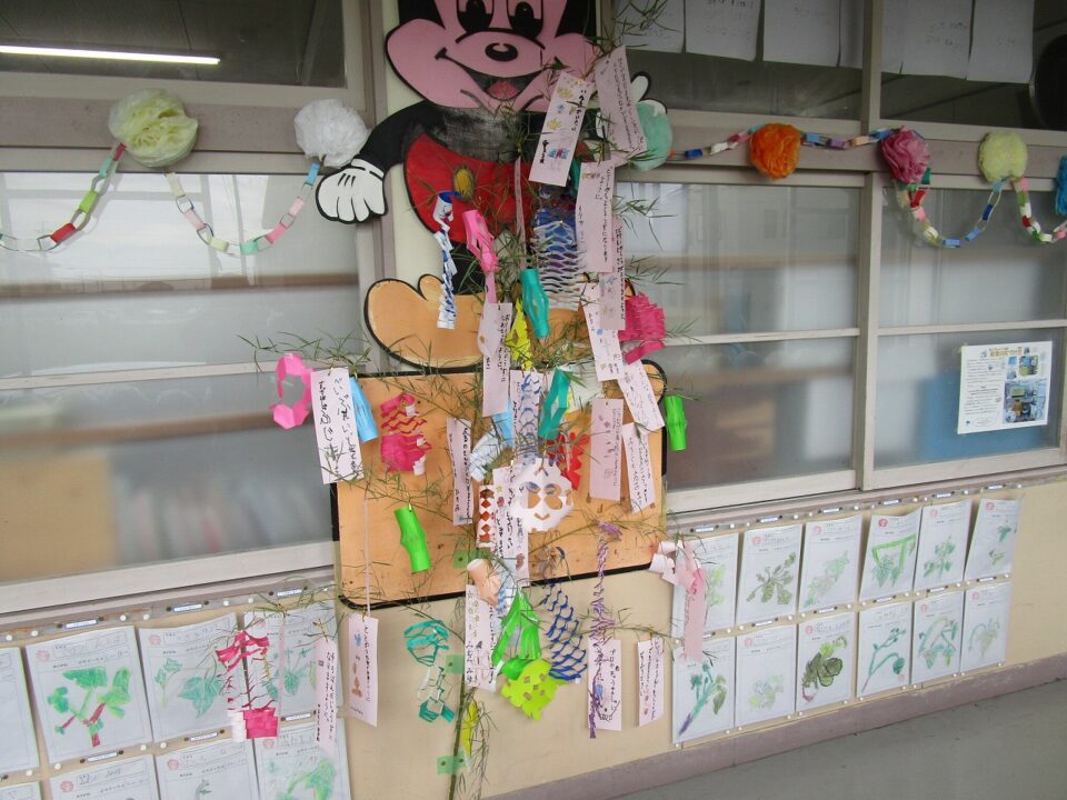 各クラスで願いを短冊に書いてつるしたり、笹飾りを作って飾ったりしていました。