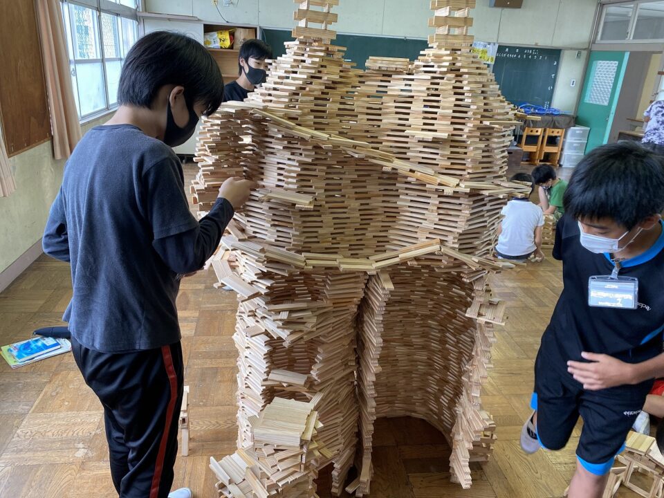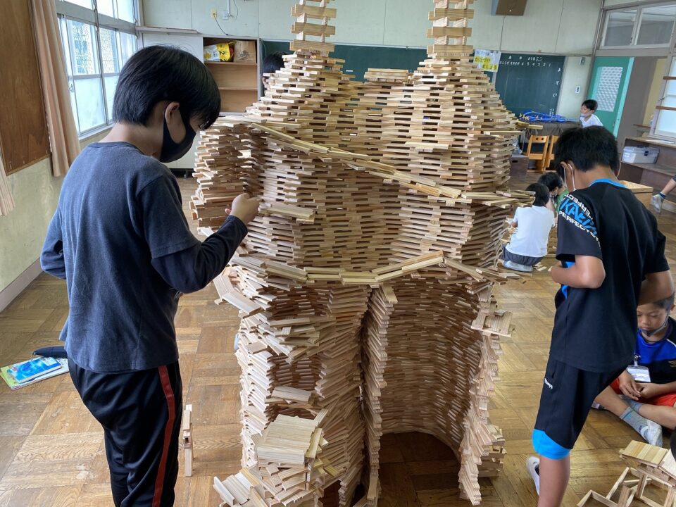 6年生の子たちが、2年生の頃に教えてもらった作り方をしっかり覚えているので、自分の背よりも高い大作を短い期間で創り上げていました。