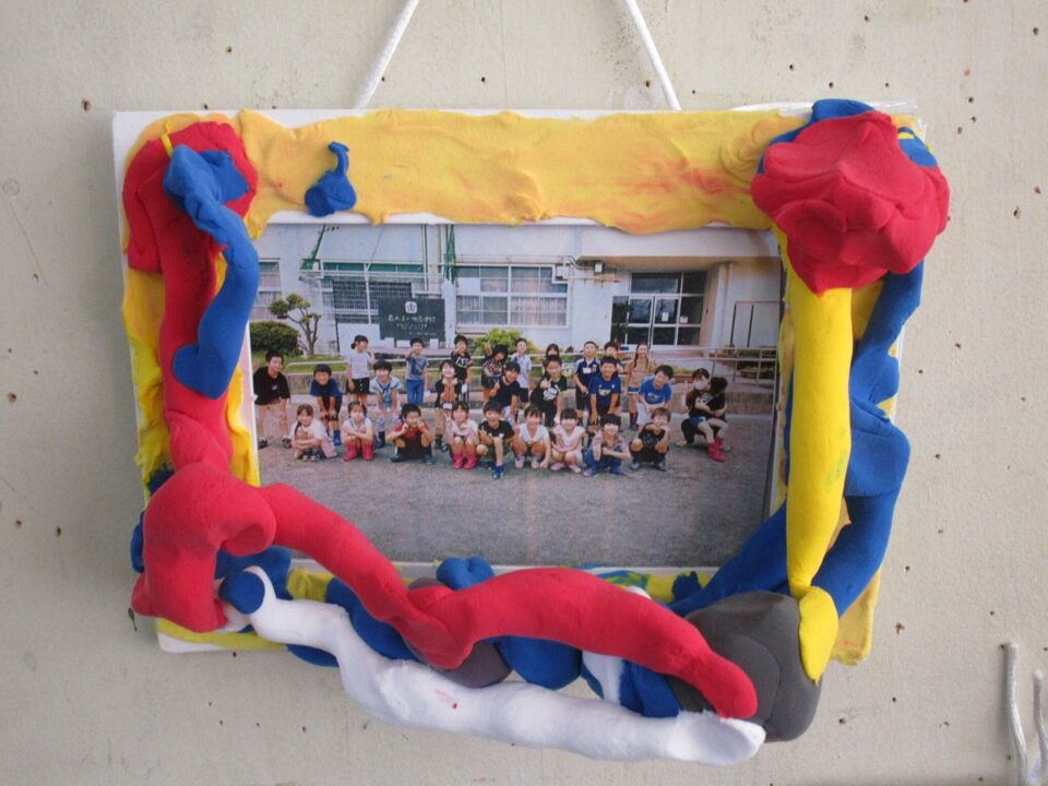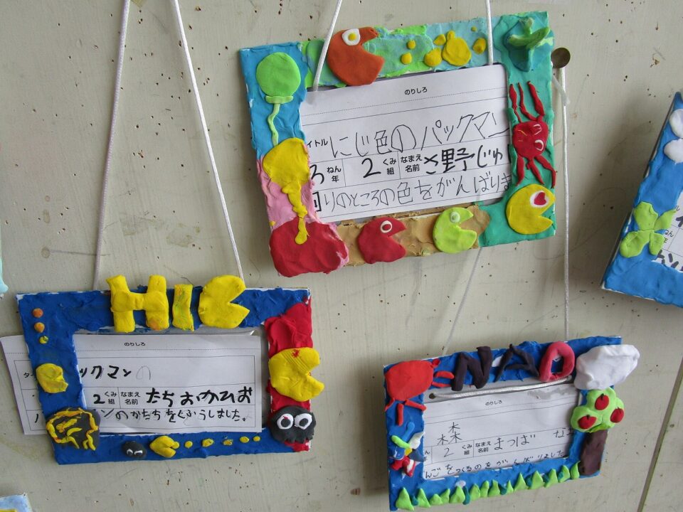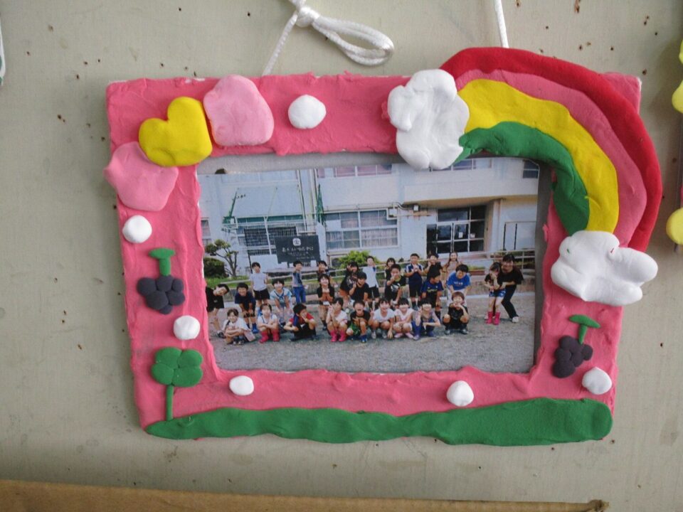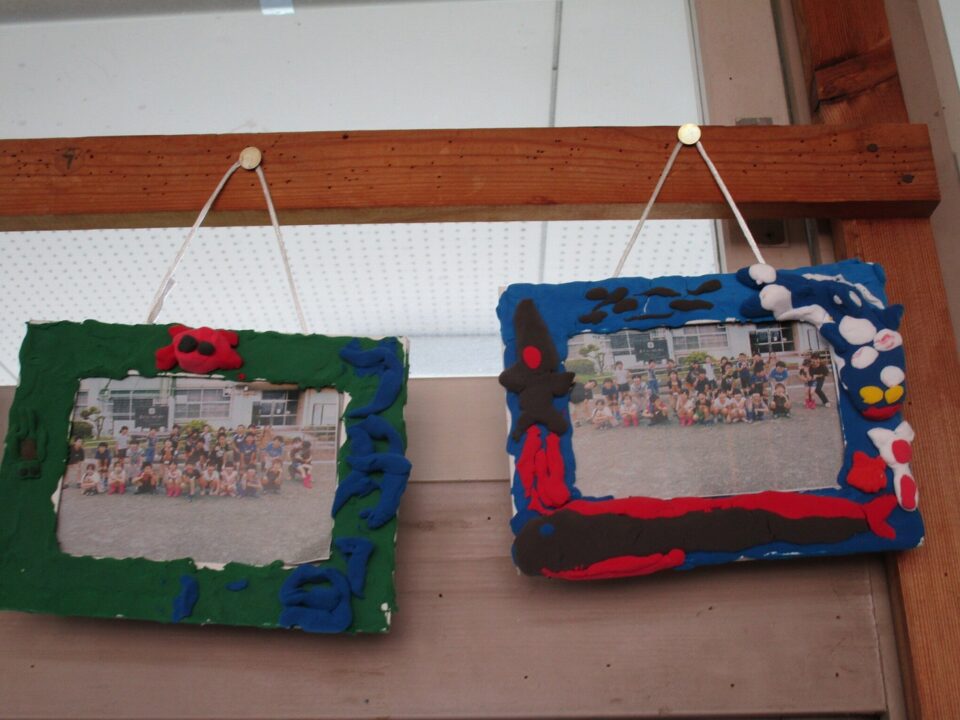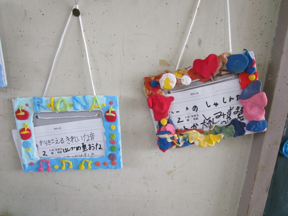 3年生では、フォトフレームが飾ってありました。オリジナル作品です。家に持ち帰ったらどこに飾るかな?