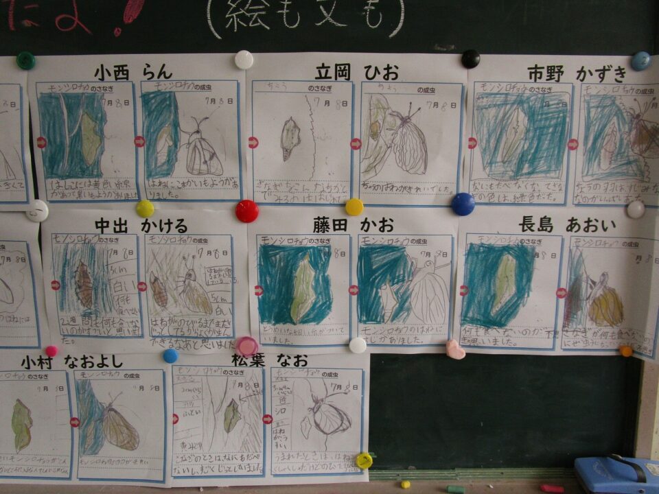 これは、理科の観察ですね。細かい部分もよく見て、大きく描けていますね。すばらしいですね。