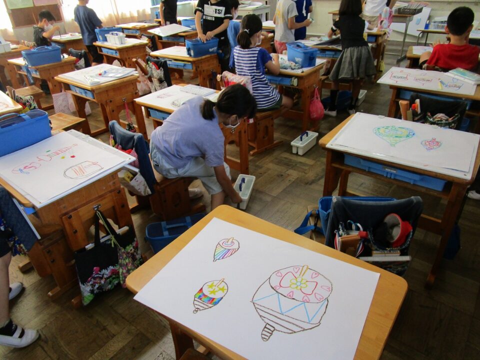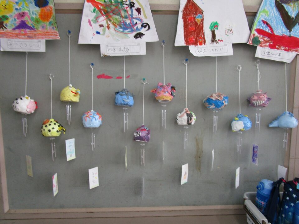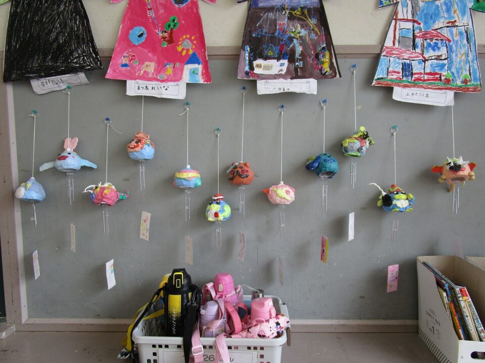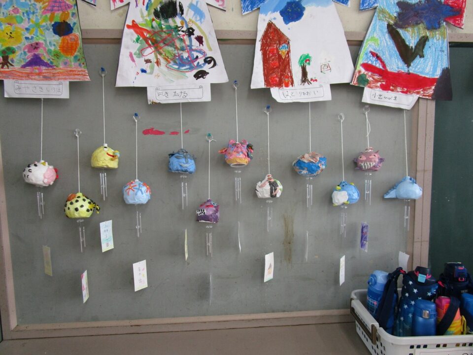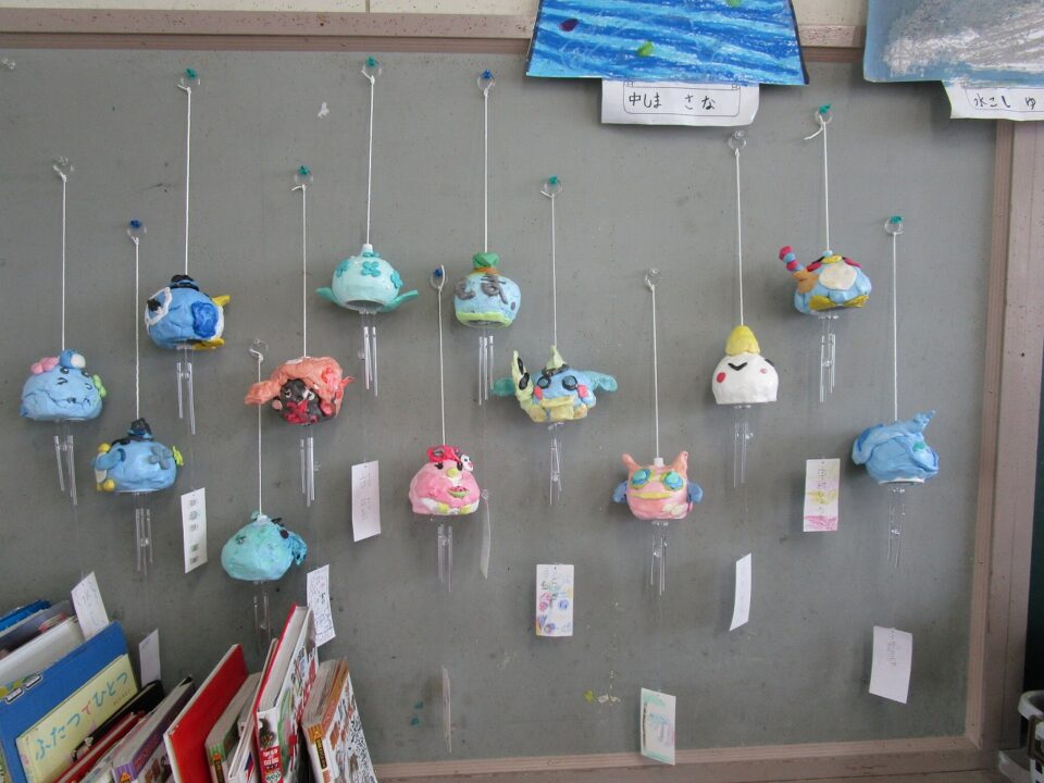 2年生の子たちが、風鈴を作りました。風が当たると、やわらかな音が出ます。