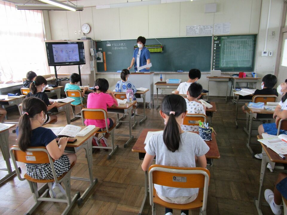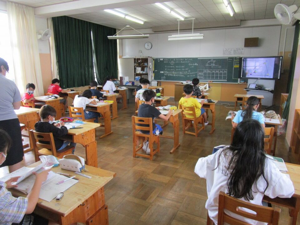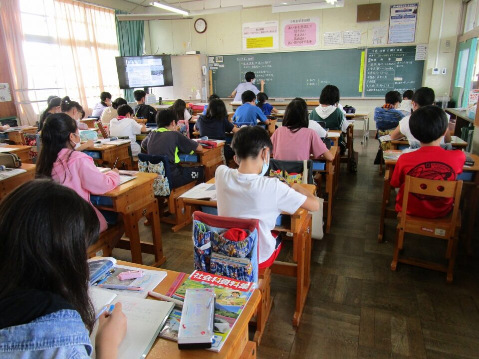 6年生は、社会の歴史と算数では比の学習でした。社会では、鎌倉時代の背景を知る事で、「なるほど」と思ったり、算数では、問題を考える中でもっとないか考えてみようと前向きな発言をしたりして、取り組んでいました。