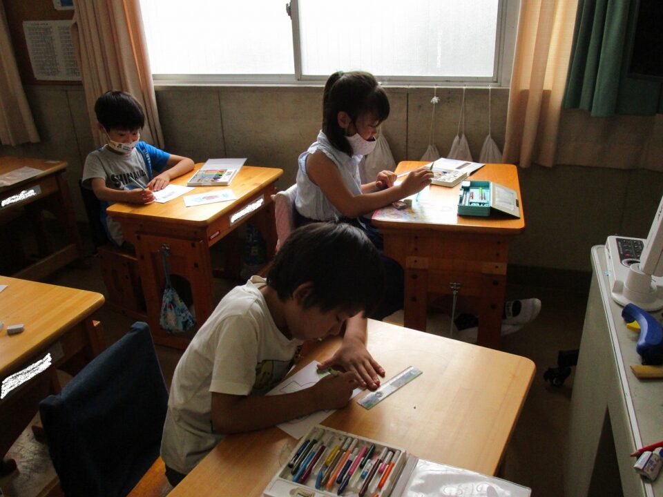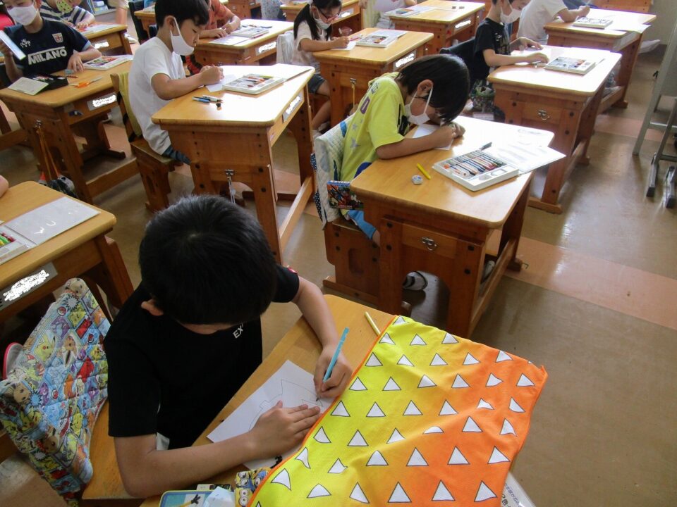 2-2は、国語科で学習したスイミーの絵を図工の時間で絵に表現していました。