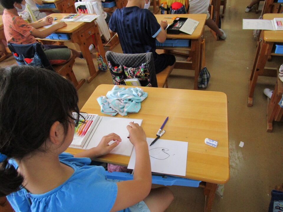 2-2は、国語科で学習したスイミーの絵を図工の時間で絵に表現していました。