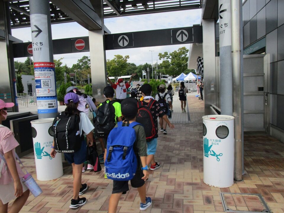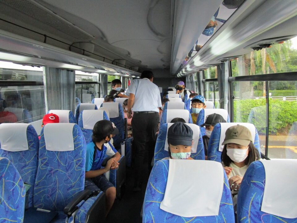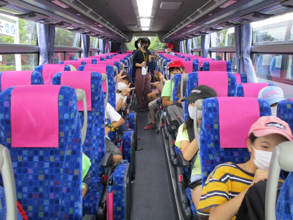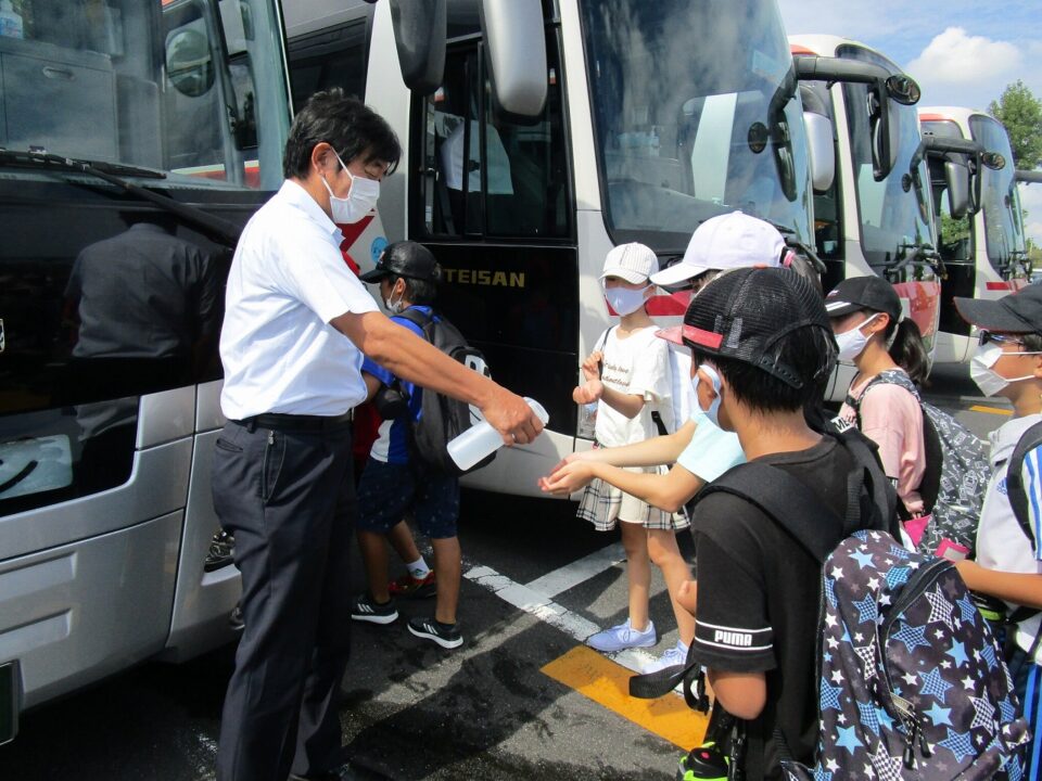 集合して、次へ向かいます。バスに乗る時は、アルコール消毒をしました。