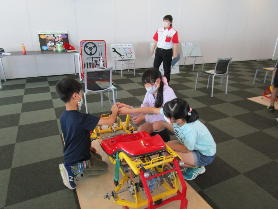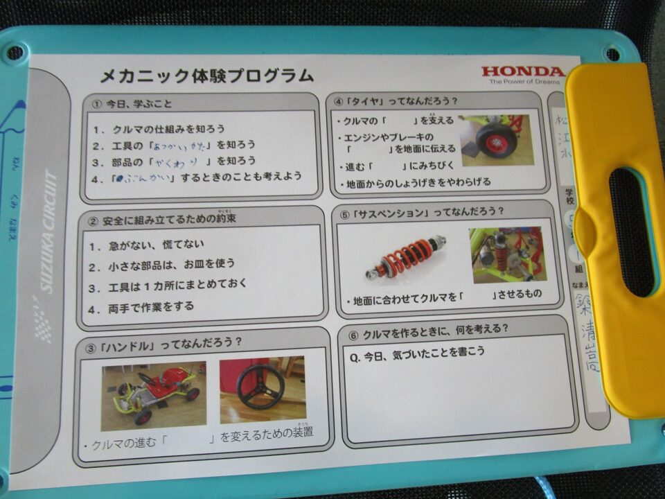 まずは、体験学習です。案内してもらいました。デザイナー体験、モータースポーツ体験、エネルギー体験、メカニック体験の4種類です。