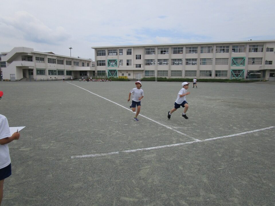 5‐2では、スタートダッシュの練習と50mの計測を行っていました。