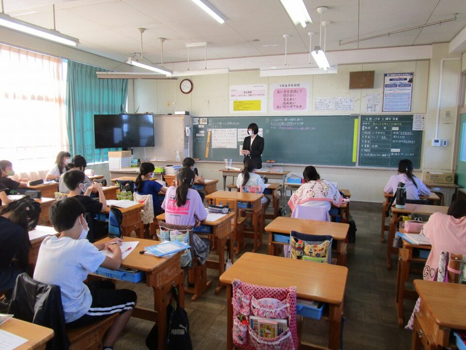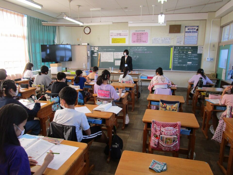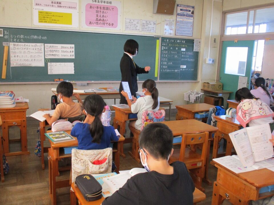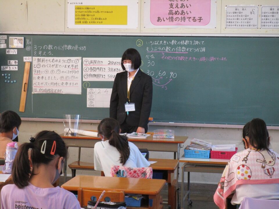 ホーム > 日々の活動の様子 / 2020年度 5-2 教育実習生(きょういくじっしゅうせい)の特別授業(とくべつじゅぎょう)でした。 5年(ねん)2組(くみ)で、教育実習生(きょういくじっしゅうせい)が授業(じゅぎょう)を行(おこな)いました。 4年生(ねんせい)の時(とき)もそうでしたが、習熟度別授業(しゅうじゅくどべつじゅぎょう)を行(おこな)っていますので、人数(にんずう)は約半分(やくはんぶん)です。 子(こ)どもたちの一生懸命考(いっしょうけんめいかんが)える姿(すがた)が見(み)られました。 シェアする Twitter でシェア はてなブックマークに保存 LINE でシェア Facebook でシェア Pocket に保存 Feedly で購読 関連投稿 日々の活動の様子 / 2021年度 学習(がくしゅう)の様子(ようす)外国語科(がいこくごか)・理科(りか) 日々の活動の様子 / 2023年度 学習発表会(がくしゅうはっぴょうかい) 〜1年生(ねんせい)〜 日々の活動の様子 / 2023年度 校区探検(こうくたんけん) ~3年生(ねんせい)~ 日々の活動の様子 / 2020年度 4年生(ねんせい)、5年生(ねんせい)スタディチェック 日々の活動の様子 / 2019年度 1年生となかよくなろう集会(しゅうかい) 2024年度 / 日々の活動の様子 夏(なつ)休(やす)み前(まえ)の学級(がっきゅう)での様子(ようす) 前の投稿 4年生(ねんせい)音楽(おんがく)琴(こと)の学習(がくしゅう) 次の投稿 鳥小屋(とりごや)を解体(かいたい)しました。