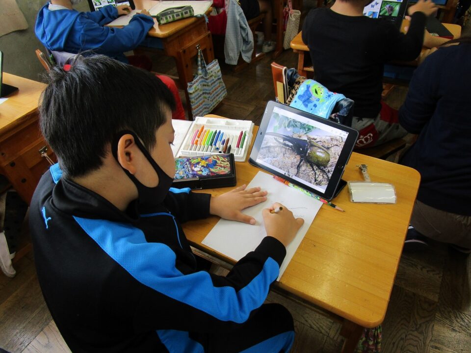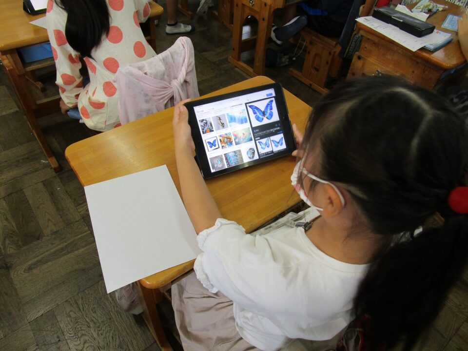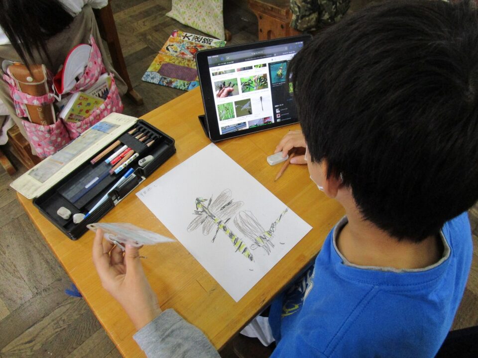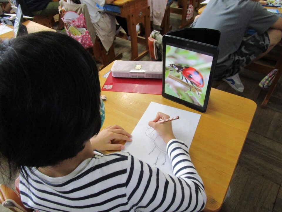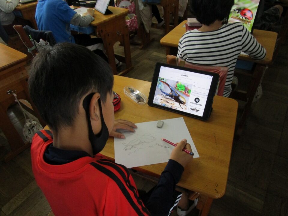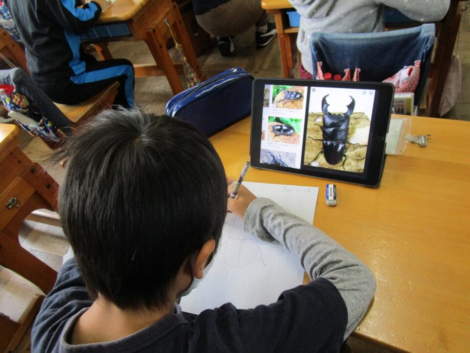 今日は、3年1組がiPadを活用して、図工の粘土で作る昆虫のデッサンをしていました。