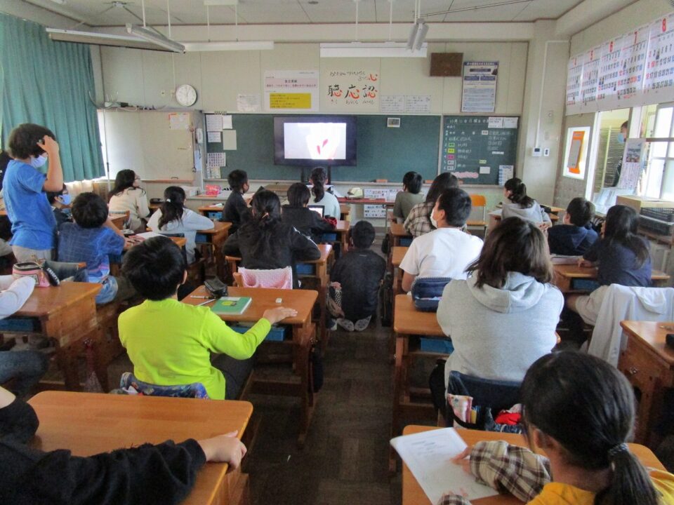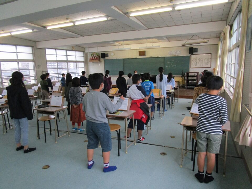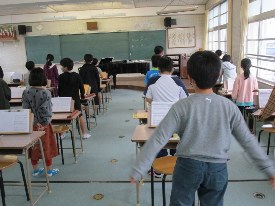 4年1組は、『わたあめ』という歌の練習をしていました。もうすでに、すてきな歌声で歌うことができていました。歌いながら、手拍子を打つ子、体を揺らしながら歌う子、足でリズムをとっている子などいて、楽しそうでした。でも、「歌詞は最後の方になると、涙目になってしまうんやに。」とYさんが教えてくれました。