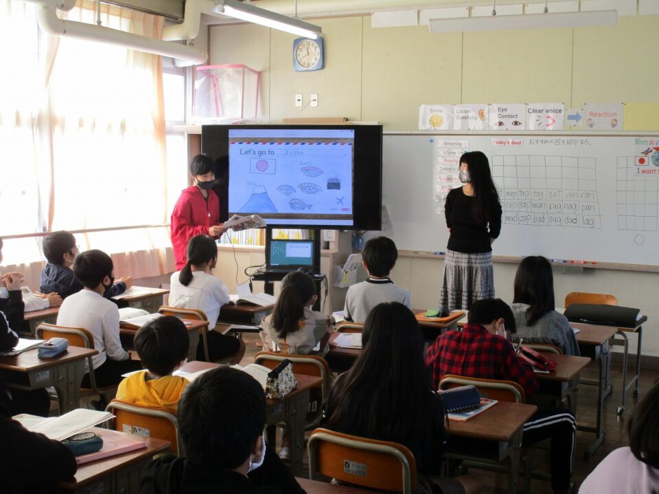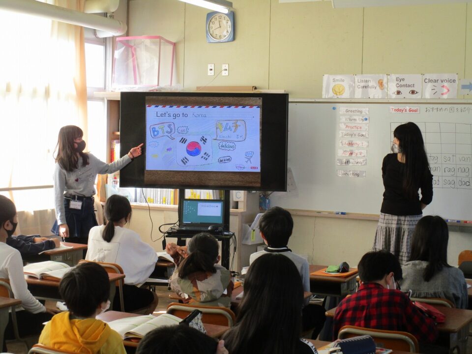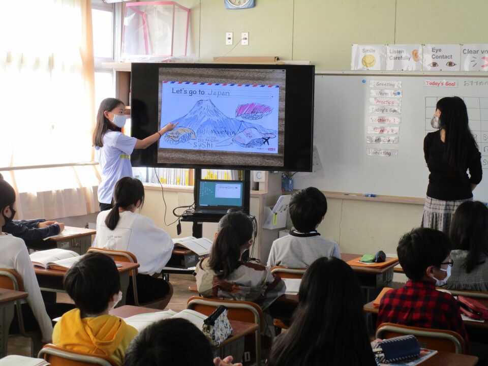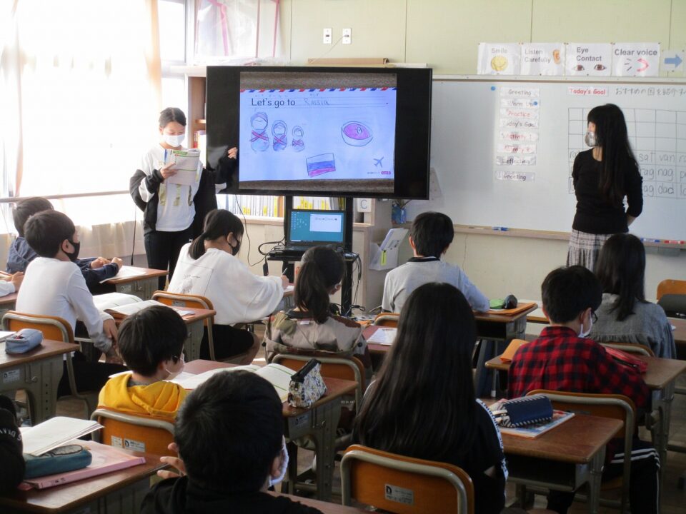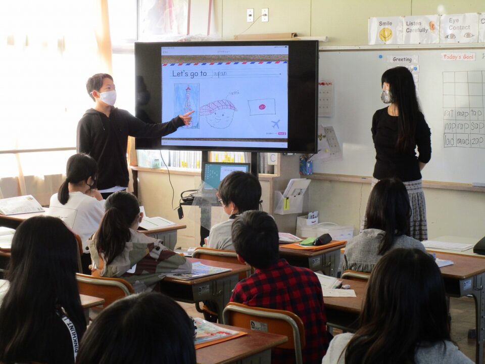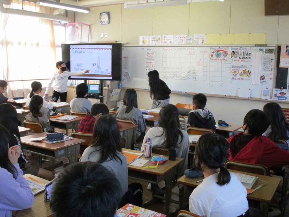 ホーム > 日々の活動の様子 / 2020年度 外国語科(がいこくごか)の授業(じゅぎょう)6‐2 今日(きょう)は、ALTのウィニー先生(せんせい)の来(く)る日(ひ)です。 6年(ねん)2組(くみ)では、めあて「おすすめの国(くに)を紹介(しょうかい)する」でした。前(まえ)へ出(で)て、プレゼンテーションのような形(かたち)で会話(かいわ)をしました。 シェアする Twitter でシェア はてなブックマークに保存 LINE でシェア Facebook でシェア Pocket に保存 Feedly で購読 関連投稿 日々の活動の様子 / 2021年度 5-1前半(ぜんはん) 家庭科調理実習(かていかちょうりじっしゅう)・食育(しょくいく) 日々の活動の様子 / 2023年度 着衣水泳(ちゃくいすいえい) ~3年生(ねんせい)~ 日々の活動の様子 / 2023年度 感謝(かんしゃ)の気持(きも)ちを込(こ)めて 2025年度 / 日々の活動の様子 委員会活動頑張っています。 日々の活動の様子 / 2022年度 調理実習(ちょうりじっしゅう) ~6年(ねん)2組(くみ)~ 日々の活動の様子 / 2019年度 イオン松阪店(まつさかてん)(マーム)幸(しあわ)せの黄色(きいろ)いレシートキャンペーン贈呈式(ぞうていしき) 前の投稿 3年生社会見学(ねんせいしゃかいけんがく)おやつカンパニー 次の投稿 松阪牛(まつさかうし)を味(あじ)わう日(ひ)