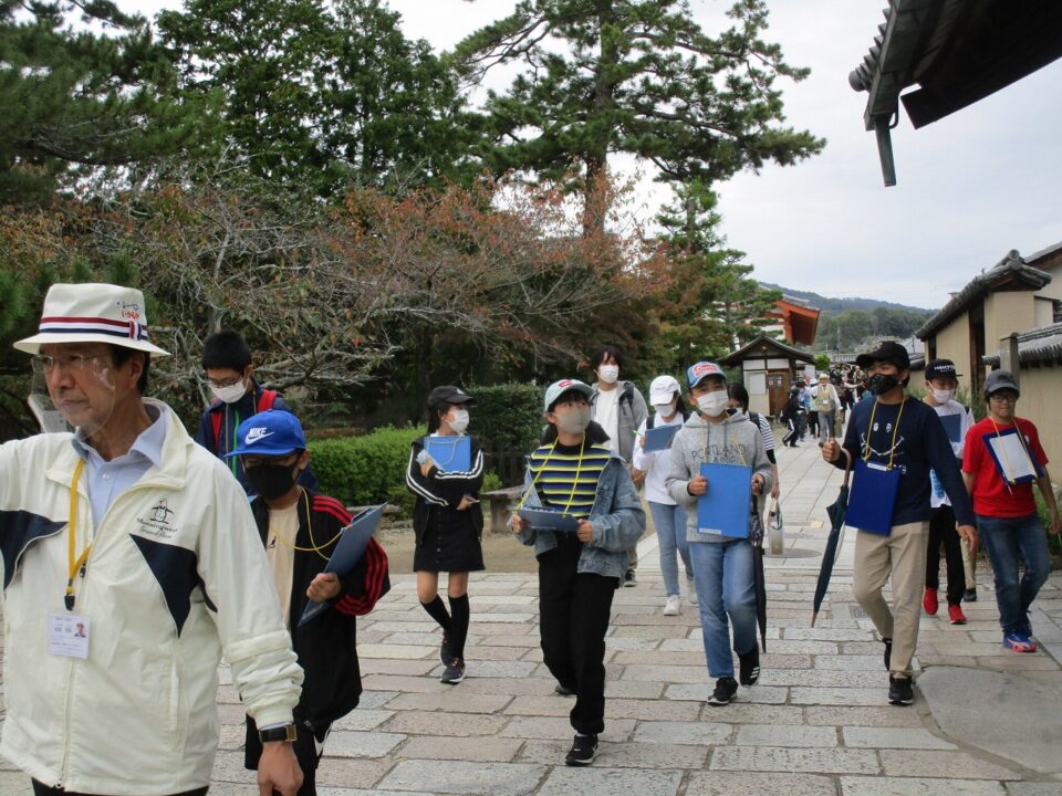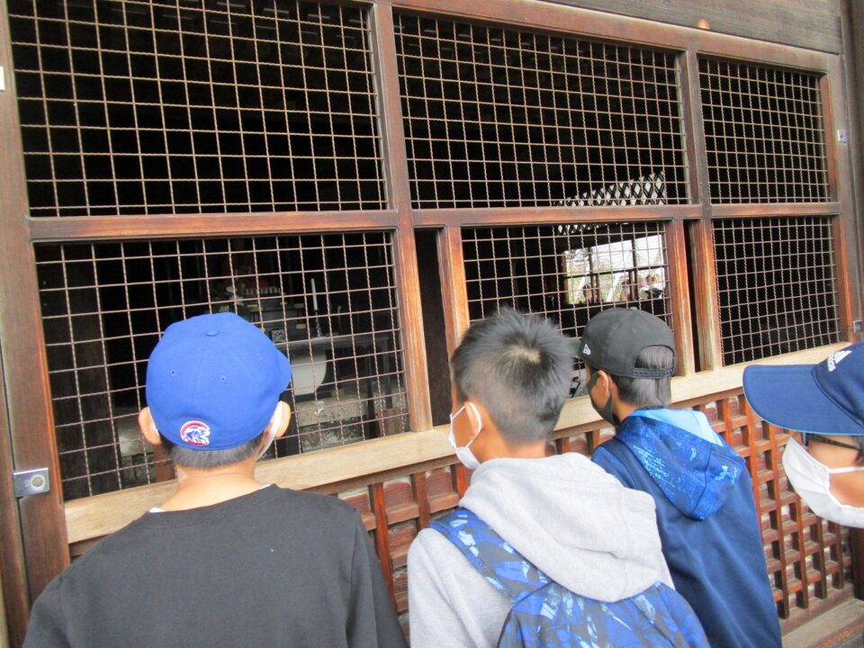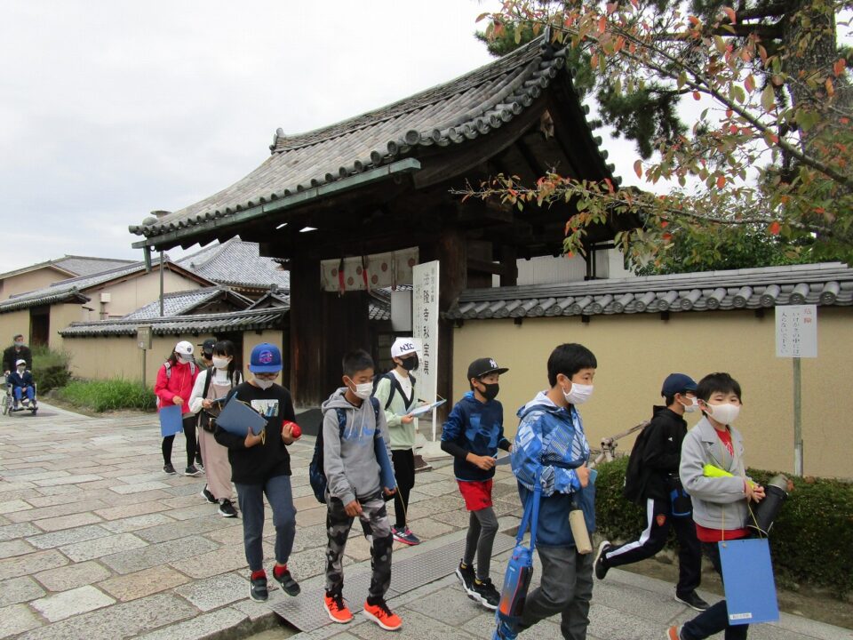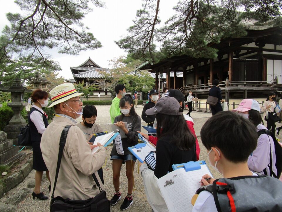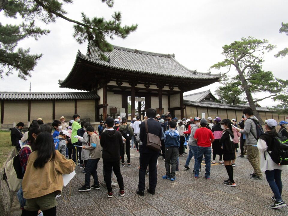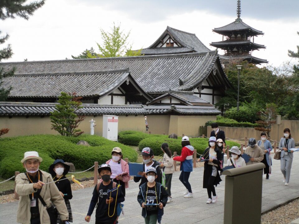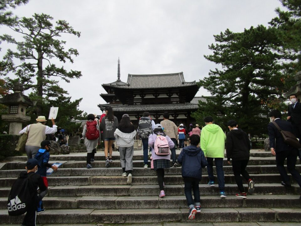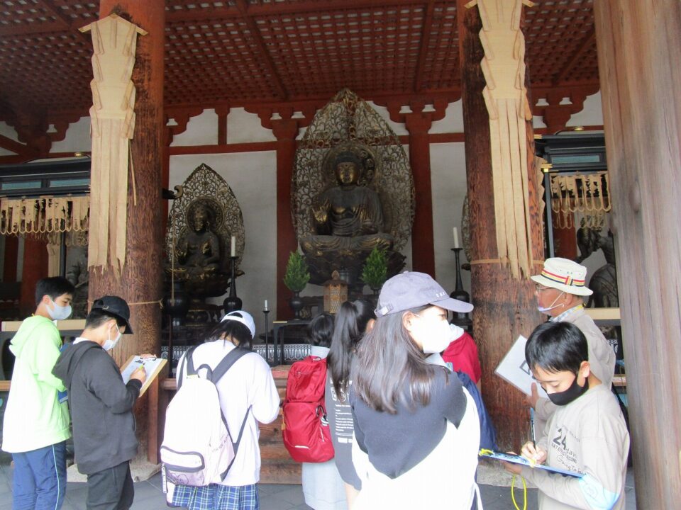 法隆寺では、各クラス3つのグループに分かれ、ガイドさん6人にそれぞれ案内、説明をしてもらいました。