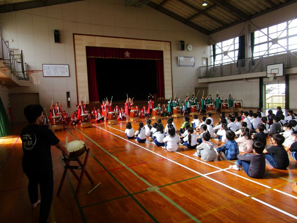 1,2年生退場後、鈴の森太鼓さんからお言葉をいただきました。