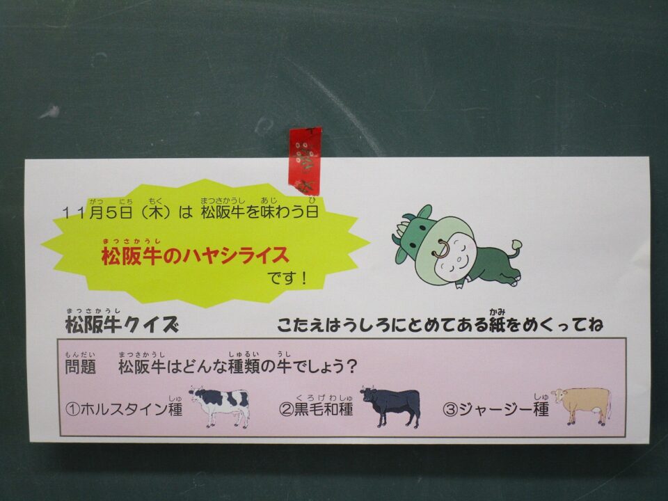これから、2月まで毎月、松阪牛の牛肉が給食に登場するそうです。楽しみですね(^^)/