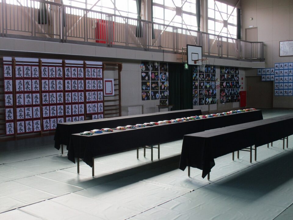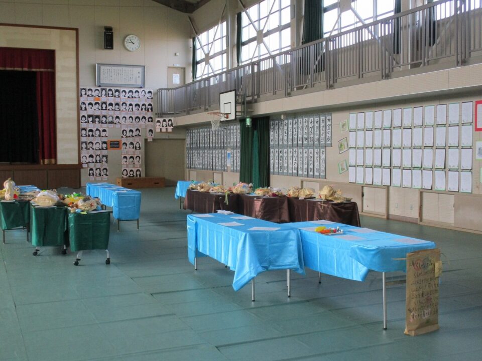 学習の様子6‐2,5-2 体育館作品展示の様子