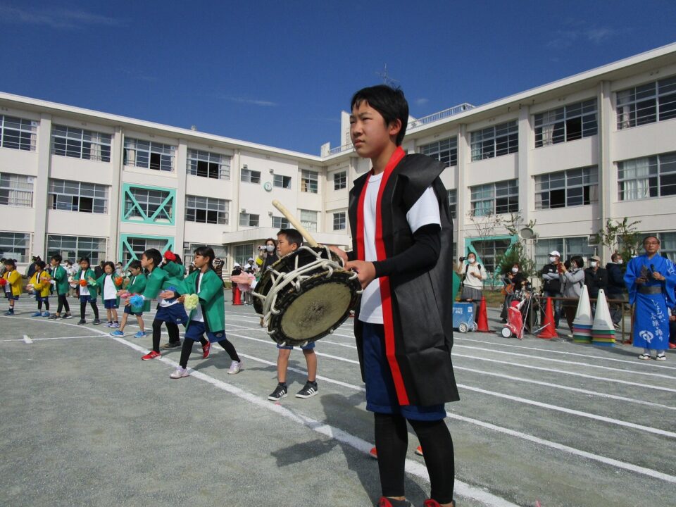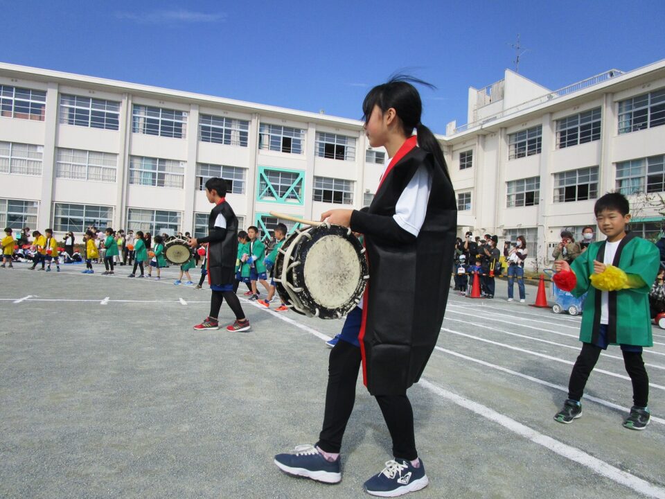 太鼓は、5.6年生の有志にお願いしました。