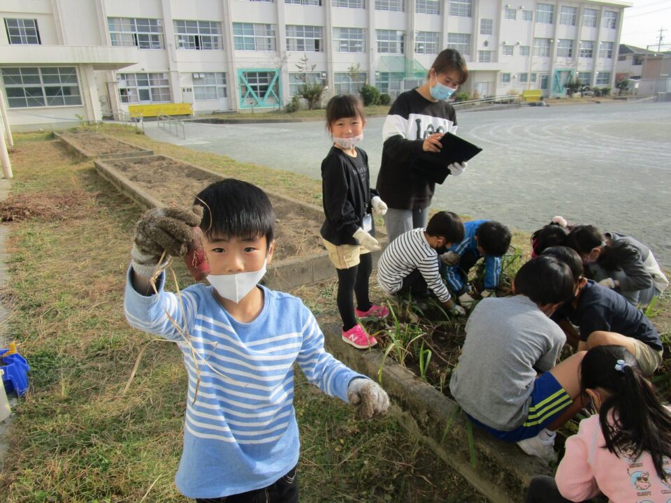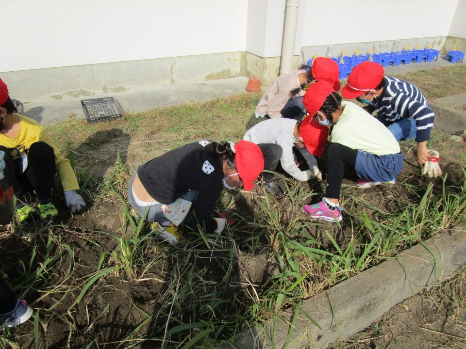 今日は、1年生はいも堀りをしました。