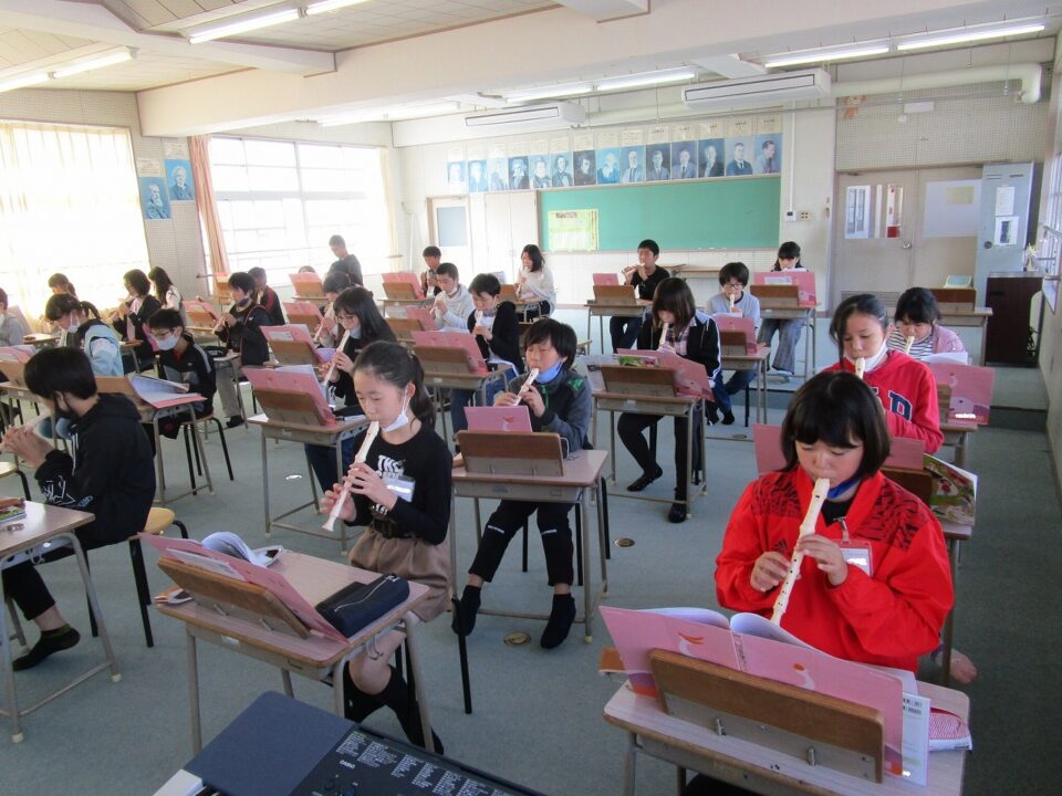 6年生の音楽です。リコーダーを上手に吹いていました。
