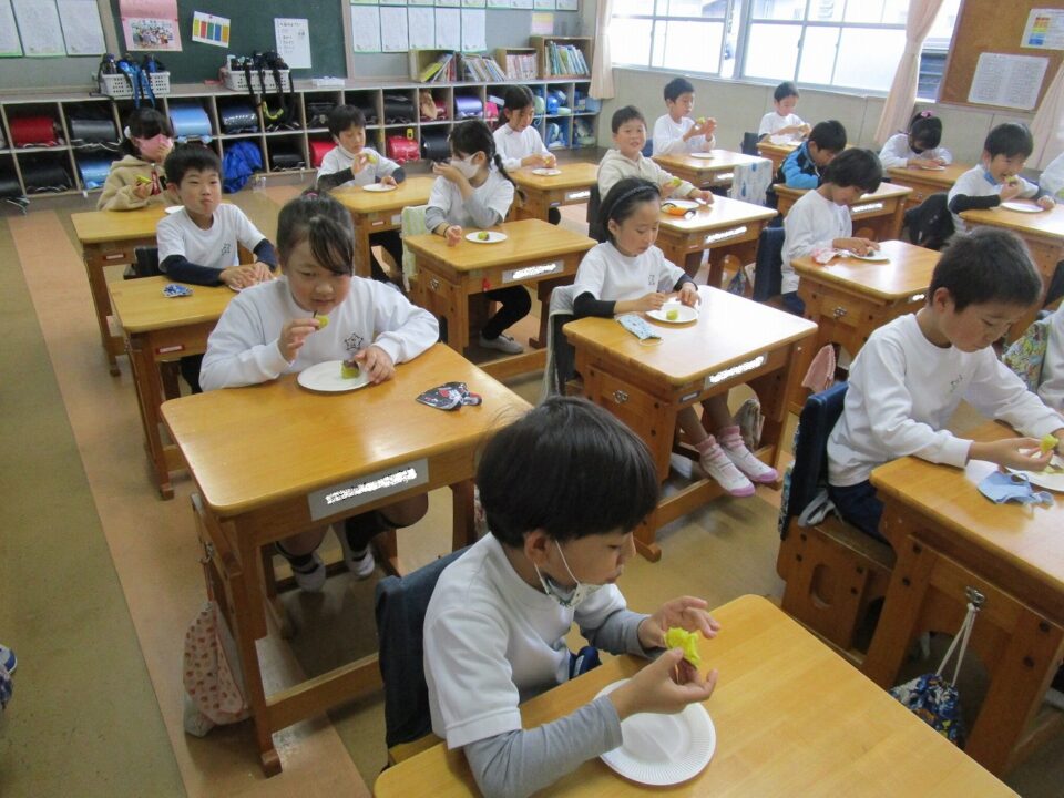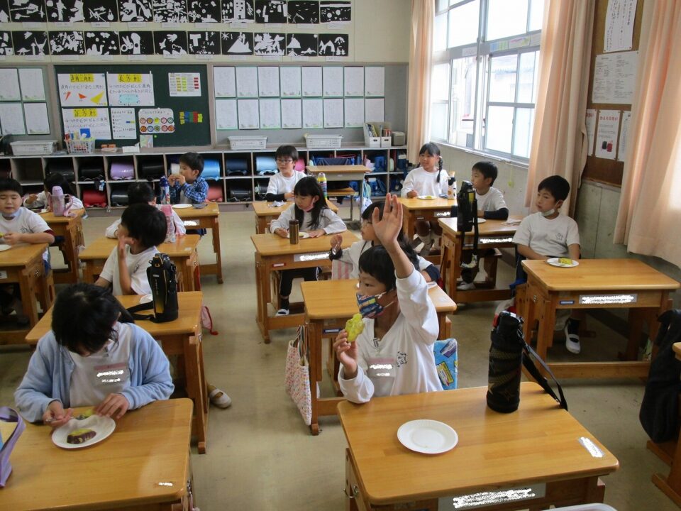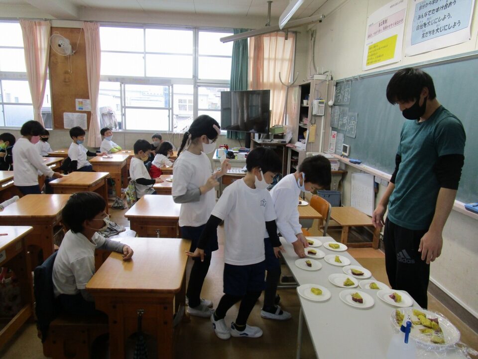 ホーム > 日々の活動の様子 / 2020年度 2年生(ねんせい) 掘(ほ)ったいもを食(た)べたよ(^^♪ 生活科(せいかつか)の時間(じかん)に、自分(じぶん)たちで掘(ほ)ったさつまいもを食(た)べることにしました。 コロナ禍(か)ですので、担任(たんにん)の方(ほう)で家庭科室(かていかしつ)でふかしいもを作(つく)り、教室(きょうしつ)で試食(ししょく)しました。 ほっかほかのふかしいも!(^^)! みんなでおいしくいただきました。 シェアする Twitter でシェア はてなブックマークに保存 LINE でシェア Facebook でシェア Pocket に保存 Feedly で購読 関連投稿 2024年度 / 日々の活動の様子 学習(がくしゅう)の様子(ようす) ~3・4年生(ねんせい)~ 日々の活動の様子 / 2020年度 学習(がくしゅう)の様子(ようす)5年生(ねんせい)、2‐1体育(たいいく) 日々の活動の様子 / 2023年度 3年社会見学(ねんしゃかいけんがく) ~昼食(ちゅうしょく)~ 日々の活動の様子 / 2023年度 5年社会見学(ねんしゃかいけんがく) 〜鈴鹿市伝統産業会館(すずかしでんとうさんぎょうかいかん)〜 2024年度 / 日々の活動の様子 2年校外学習(ねんこうがいがくしゅう) 日々の活動の様子 / 2020年度 3年生図画(ねんせいずが)「あじさい」 前の投稿 学習(がくしゅう)の様子(ようす)3年生(ねんせい)・ペダル式(しき)アルコール消毒(しょうどく) 次の投稿 4年生(ねんせい) 松阪(まつさか)の偉人(いじん)「本居宣長(もとおりのりなが)」さんについての学習(がくしゅう)