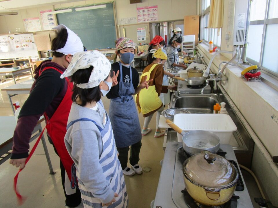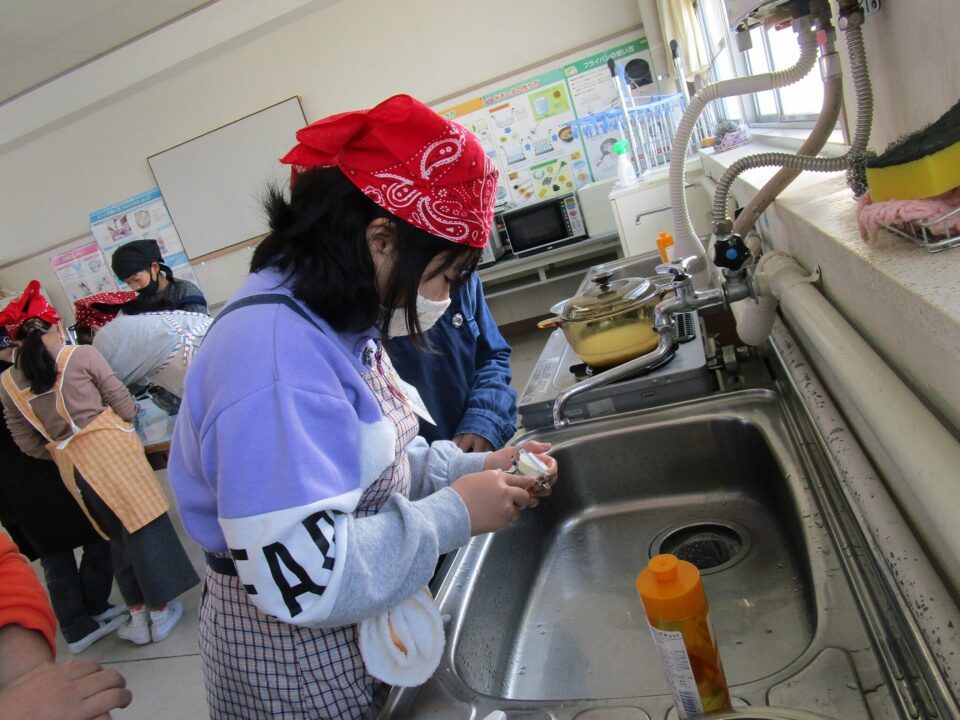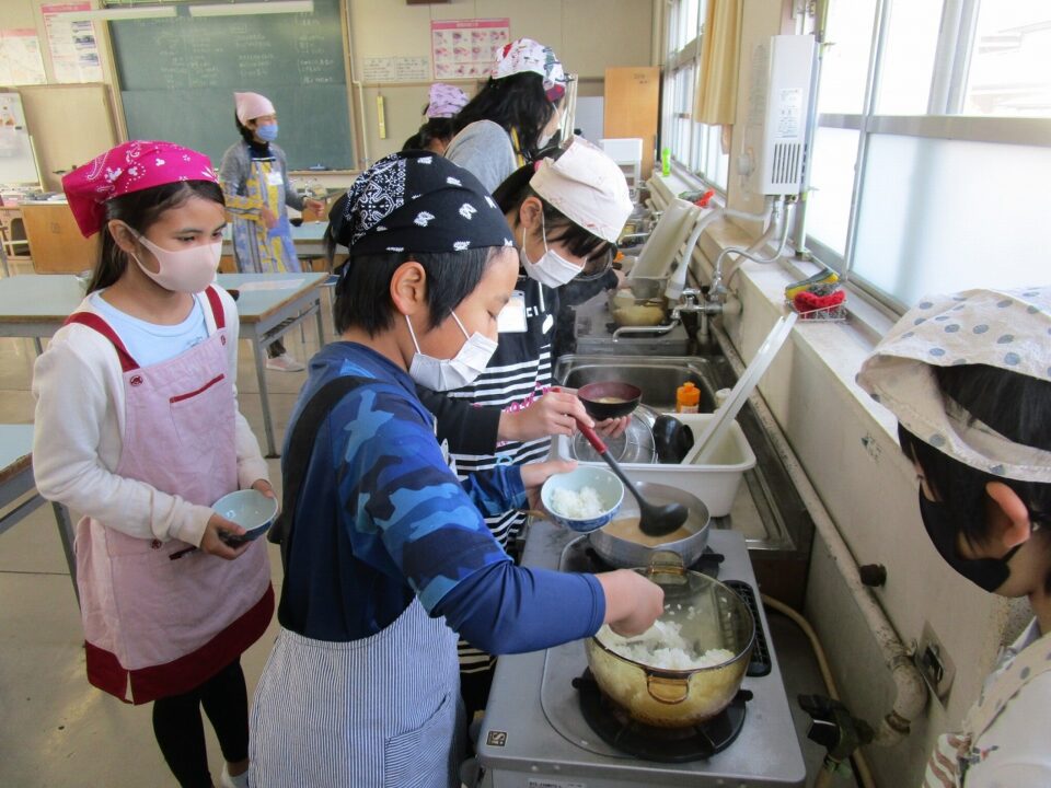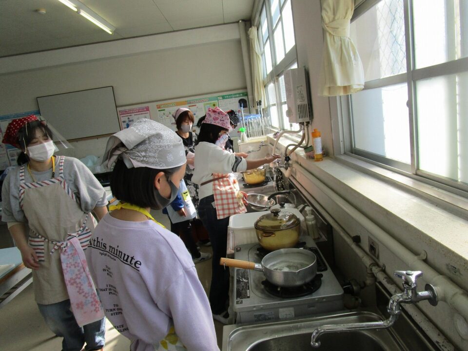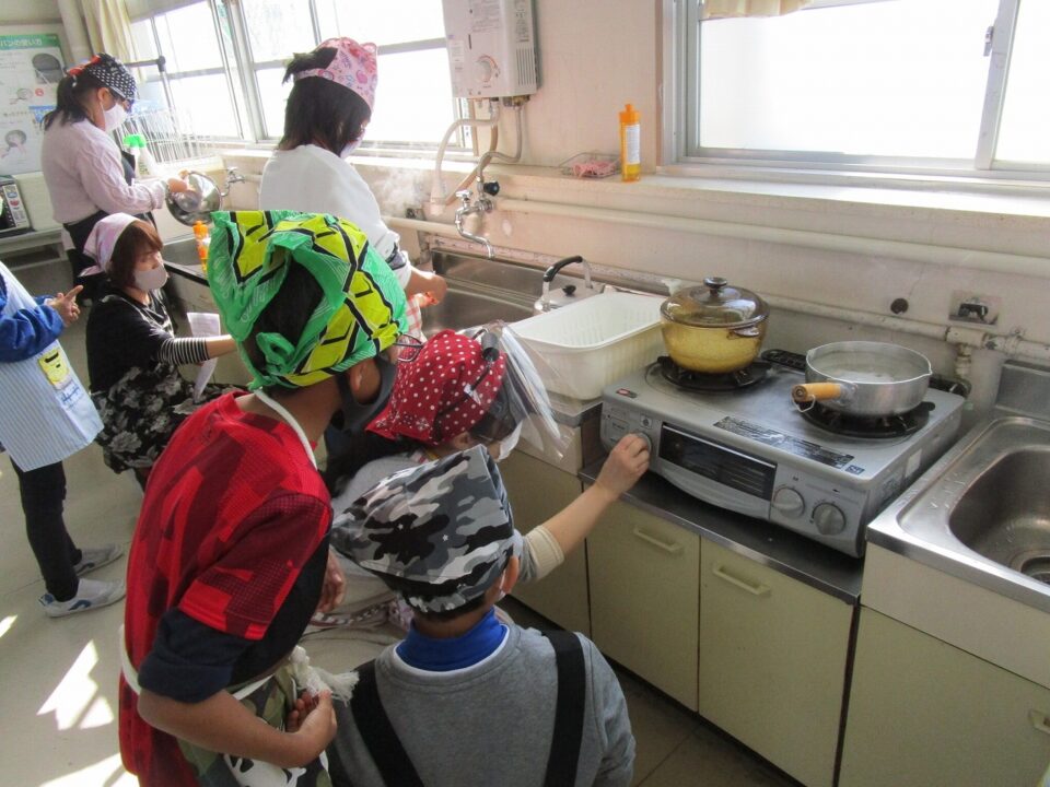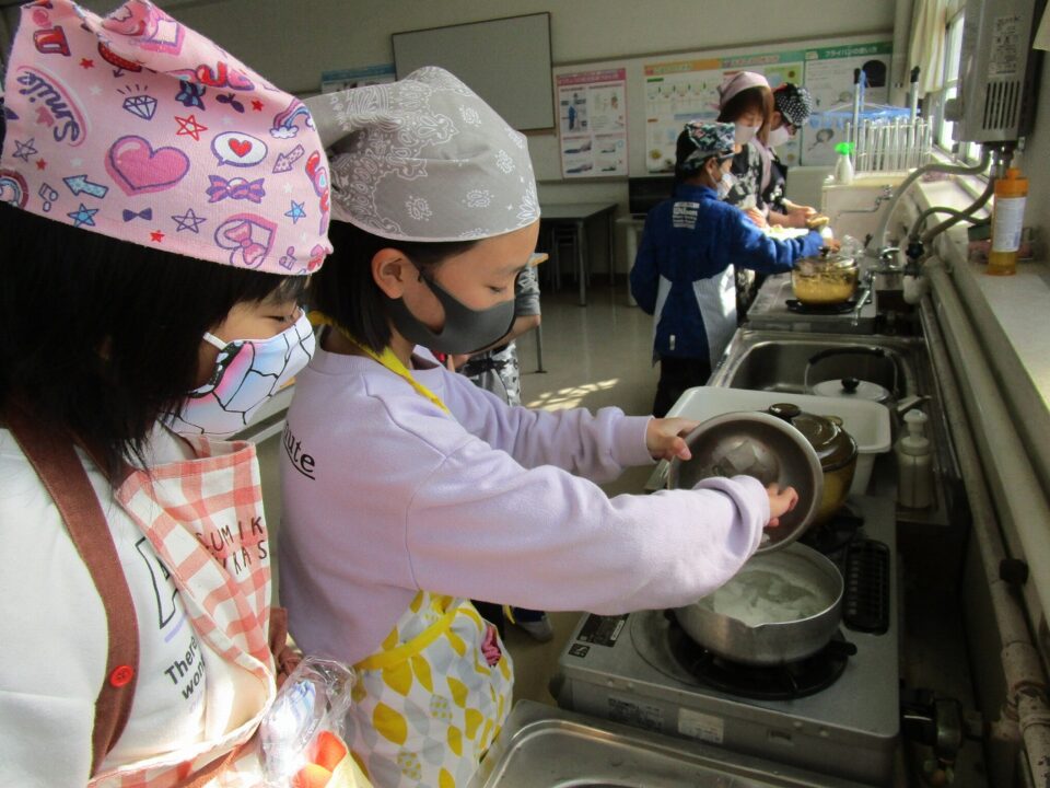 今日は、先週に引き続きもう1グループの子たちが家庭科で「ご飯、みそ汁」を作りました。