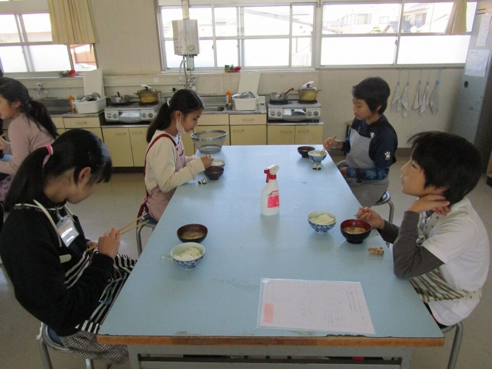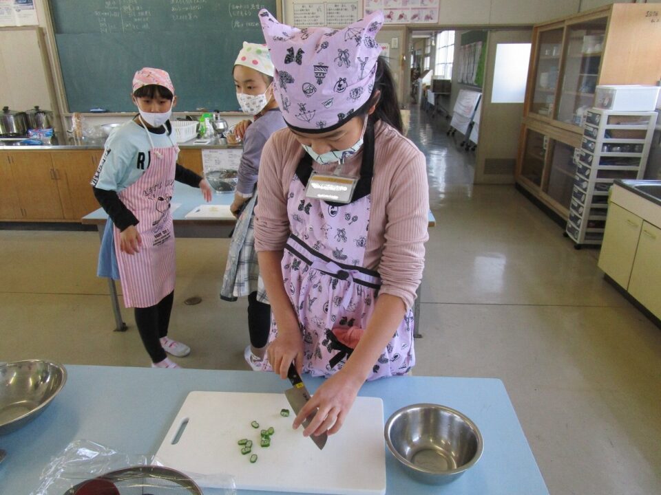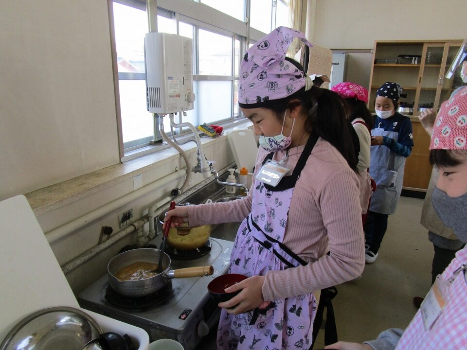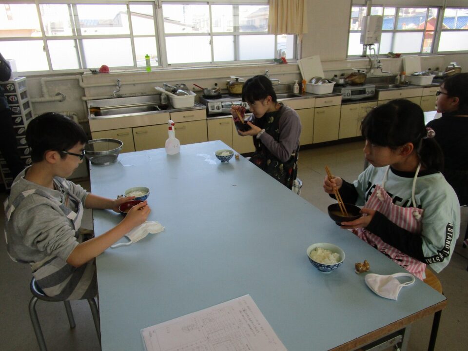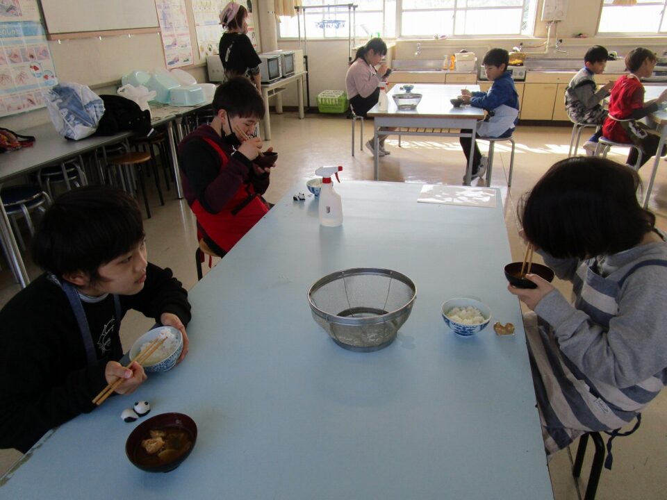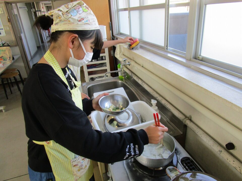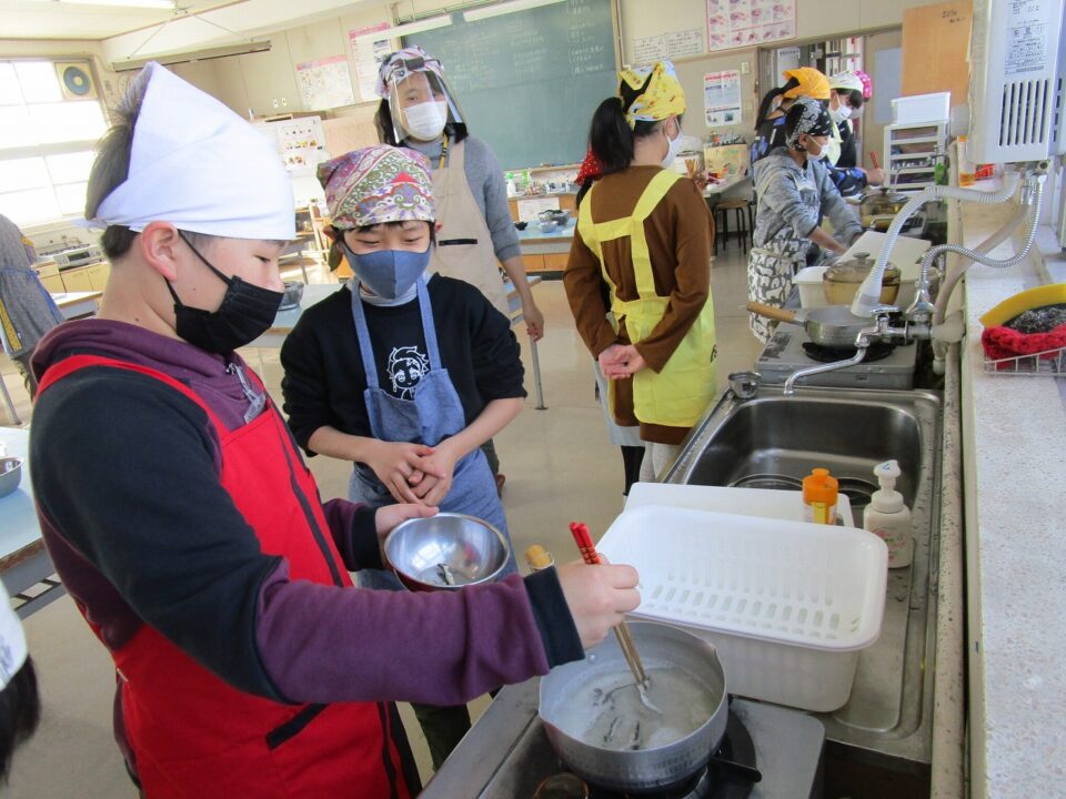今日は、先週に引き続きもう1グループの子たちが家庭科で「ご飯、みそ汁」を作りました。