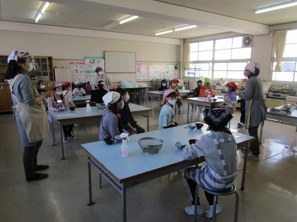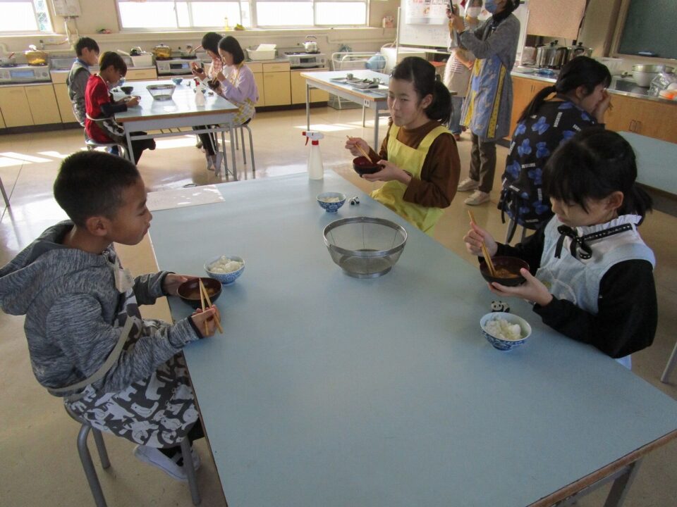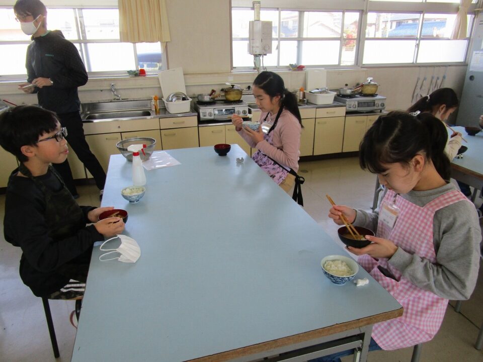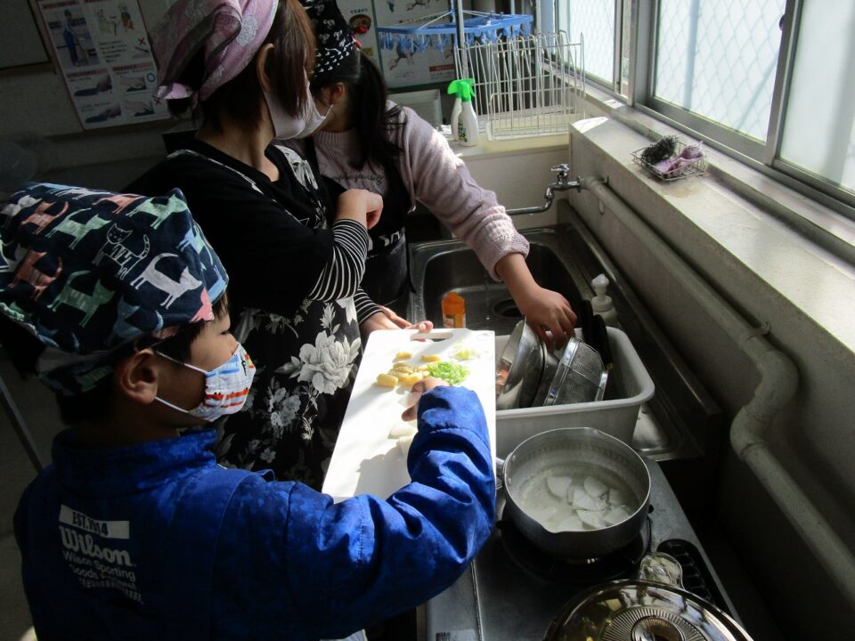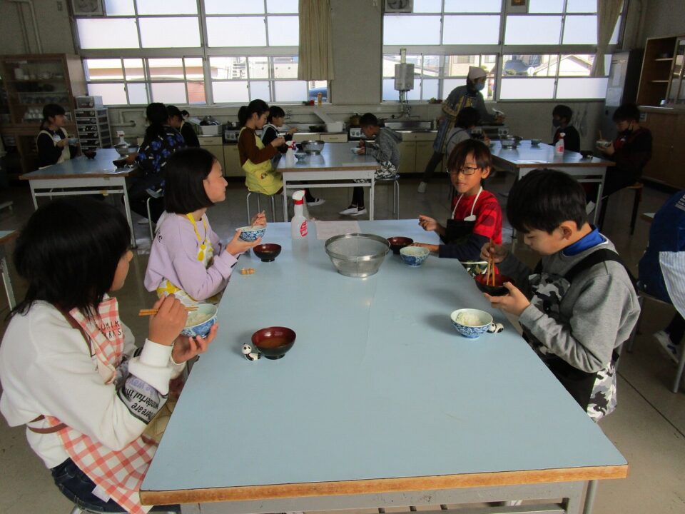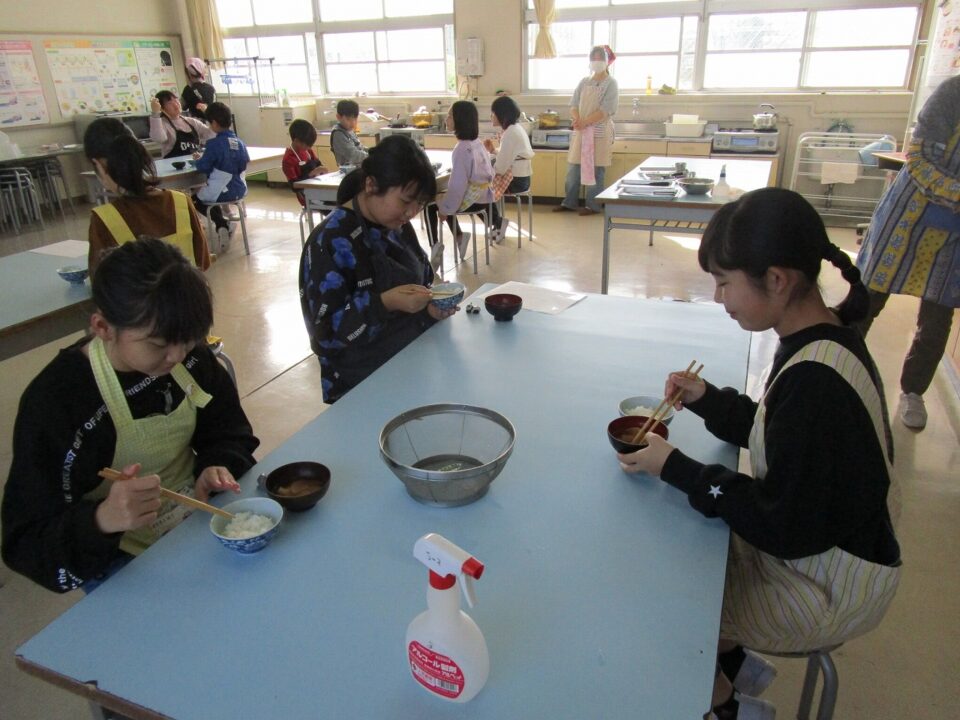 今日は、先週に引き続きもう1グループの子たちが家庭科で「ご飯、みそ汁」を作りました。