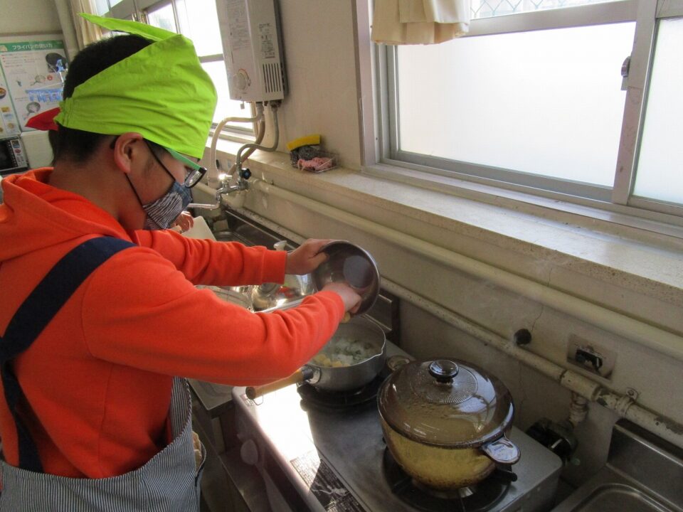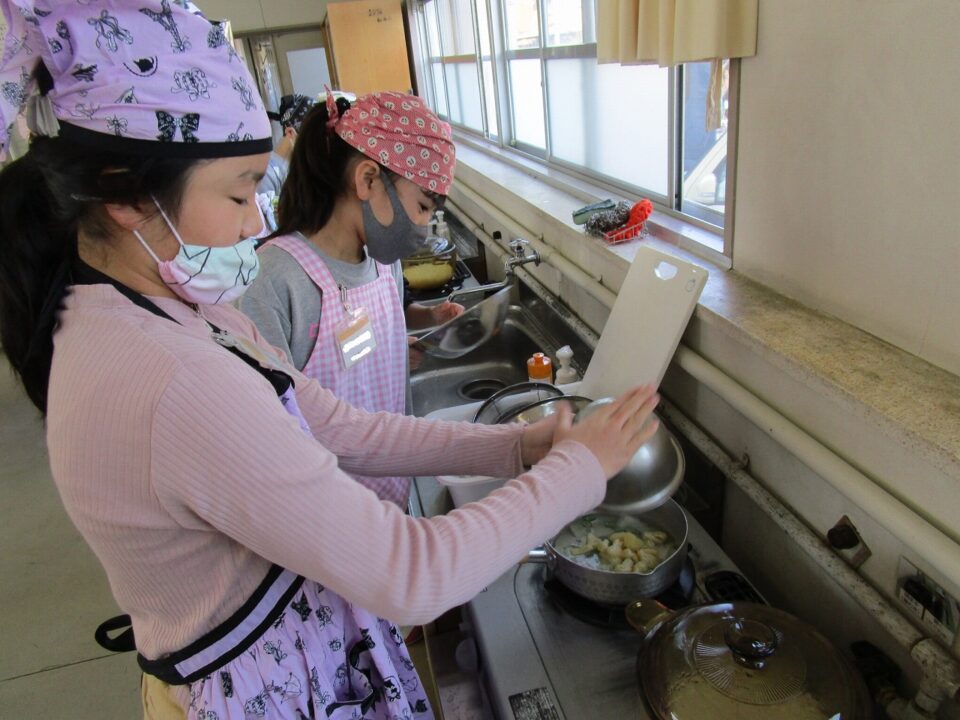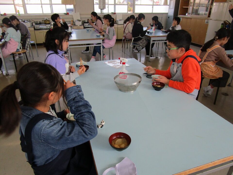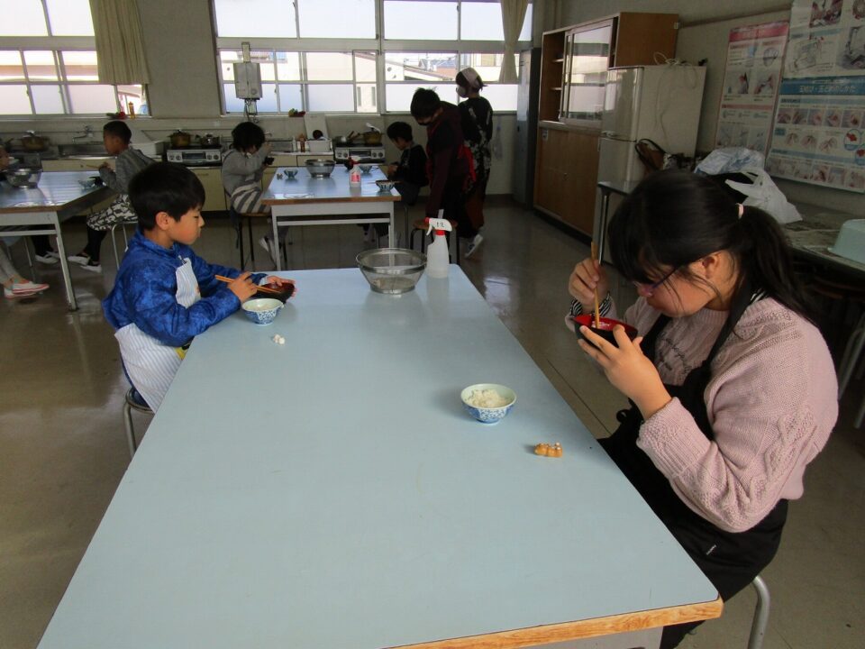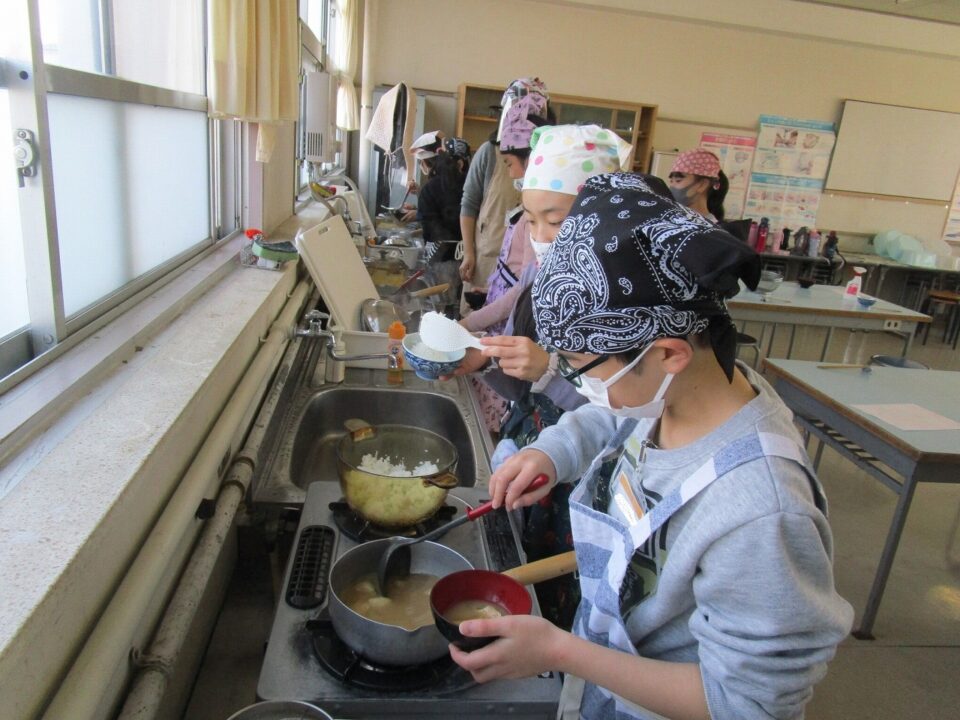 味見は、一人ひとりが小皿を使い、おかわりは、日頃、教室でしているように指導者が盛り付けをしました。