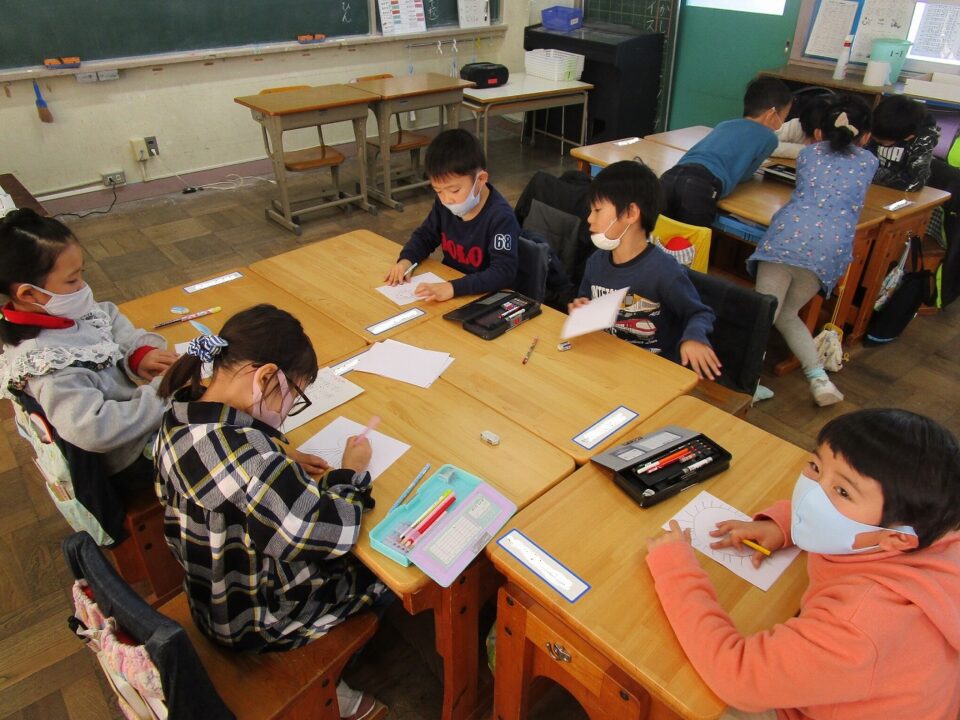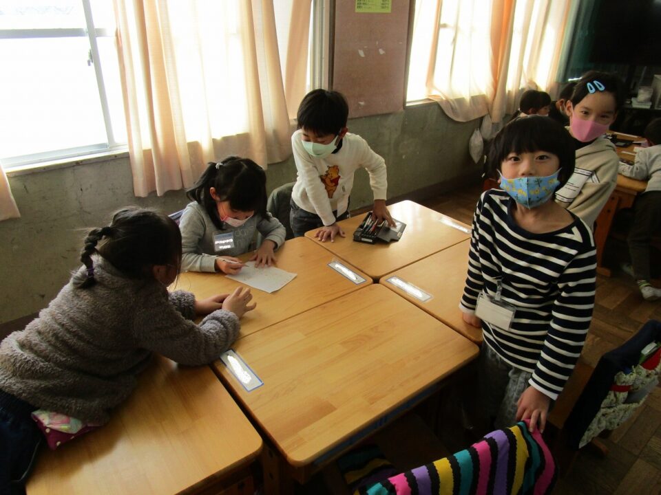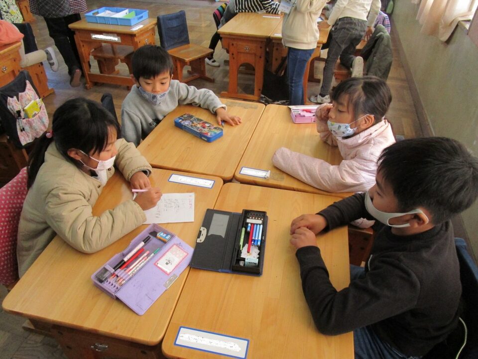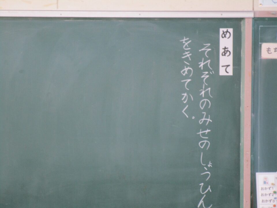 1-1では、これからおみせやさんをするようで、準備をしています。