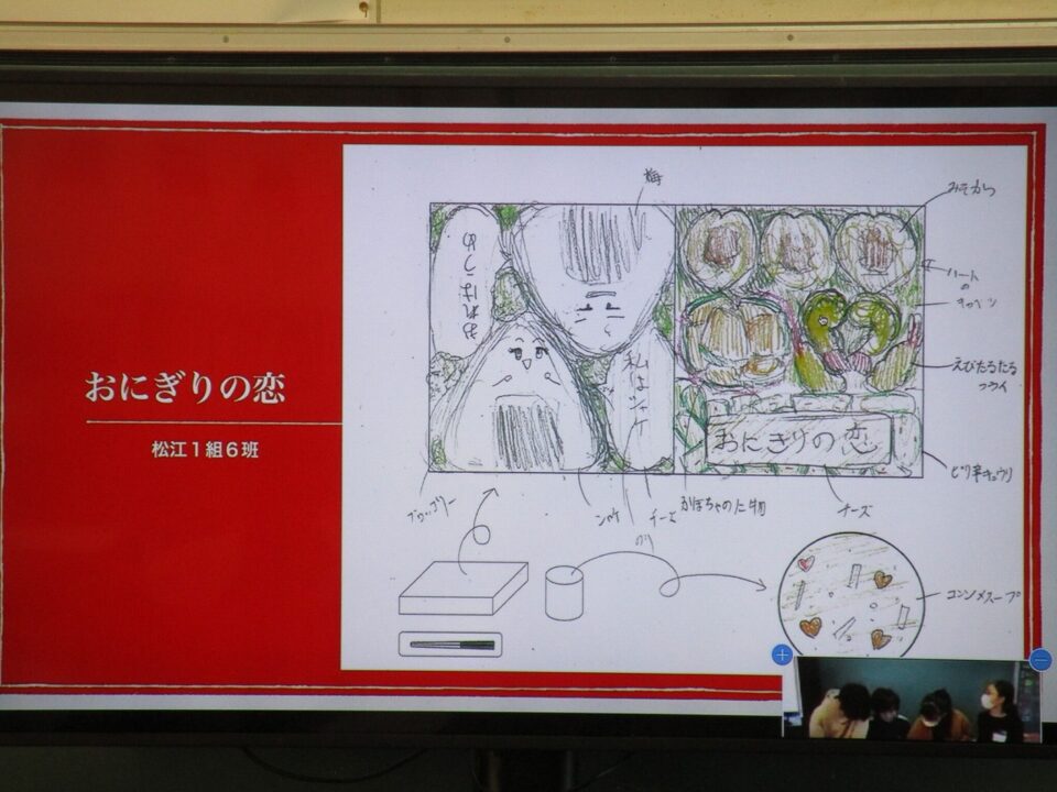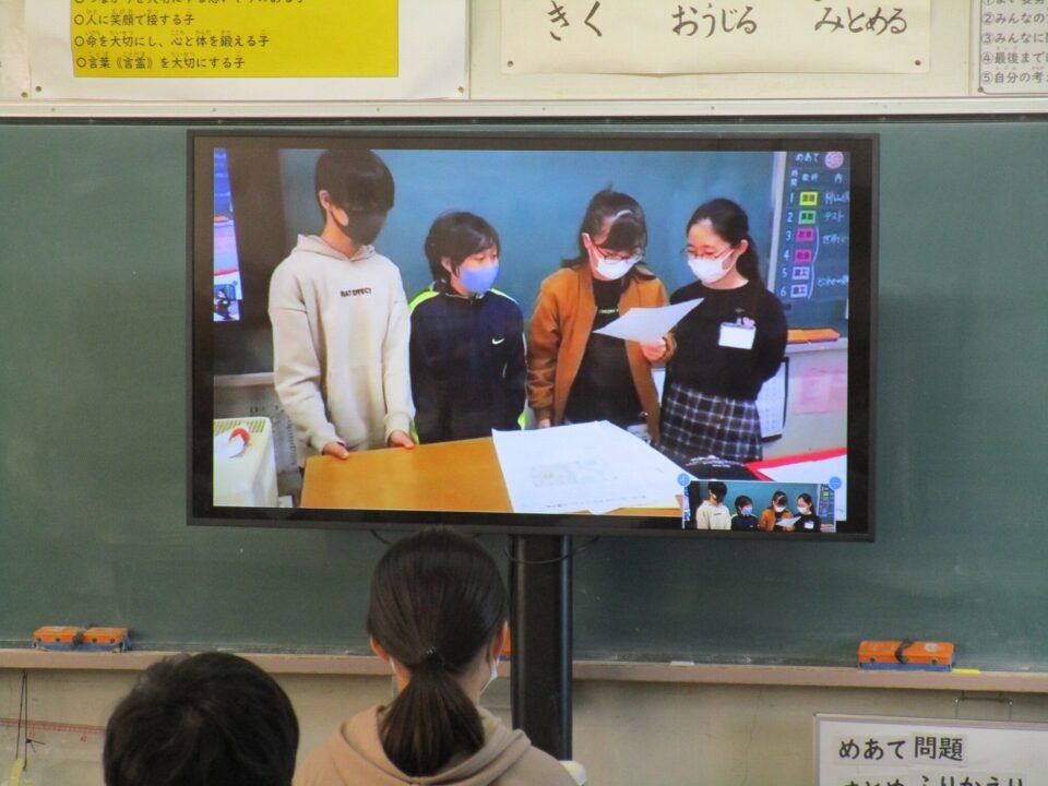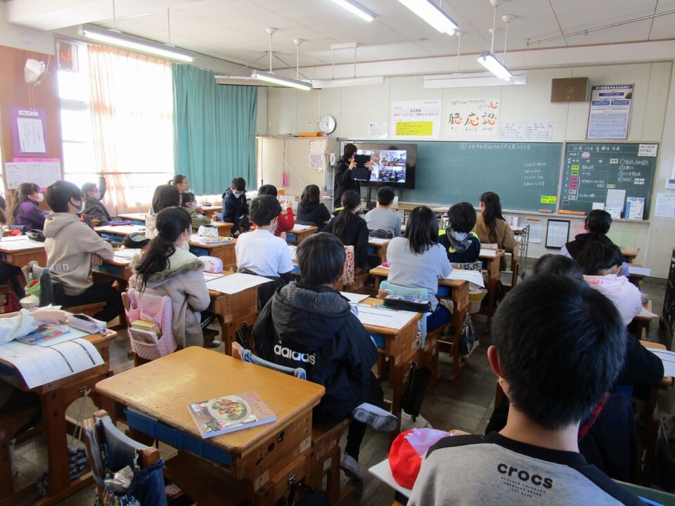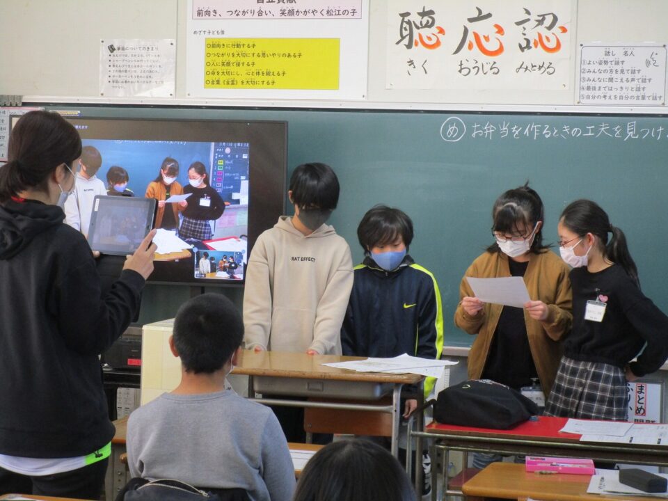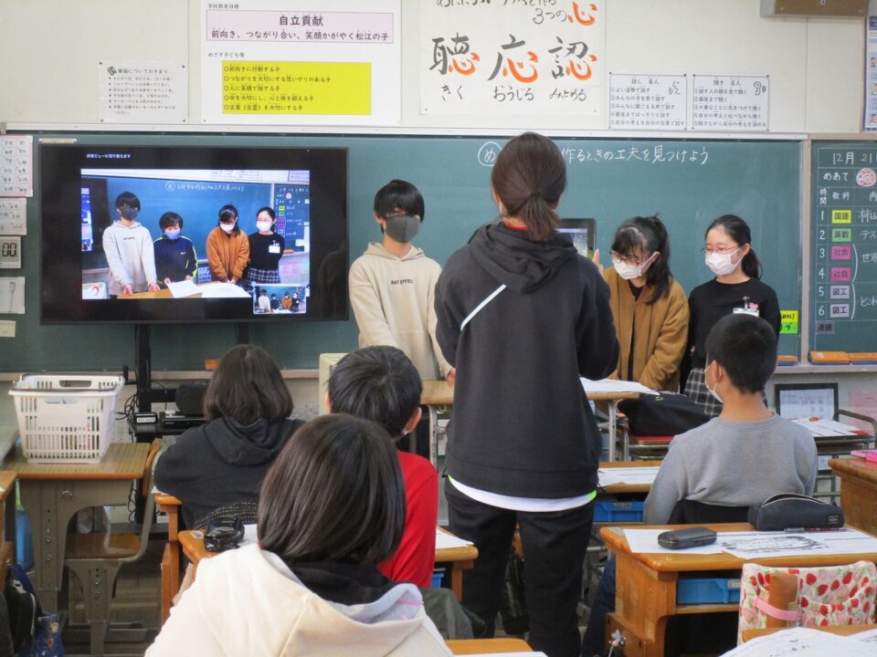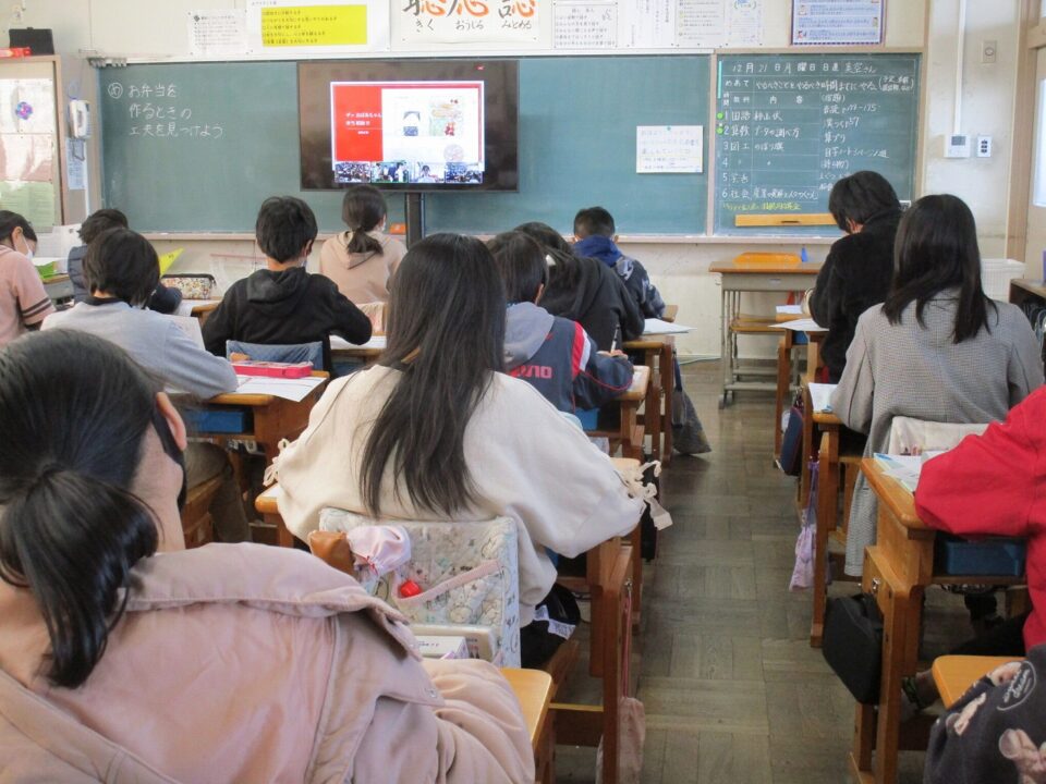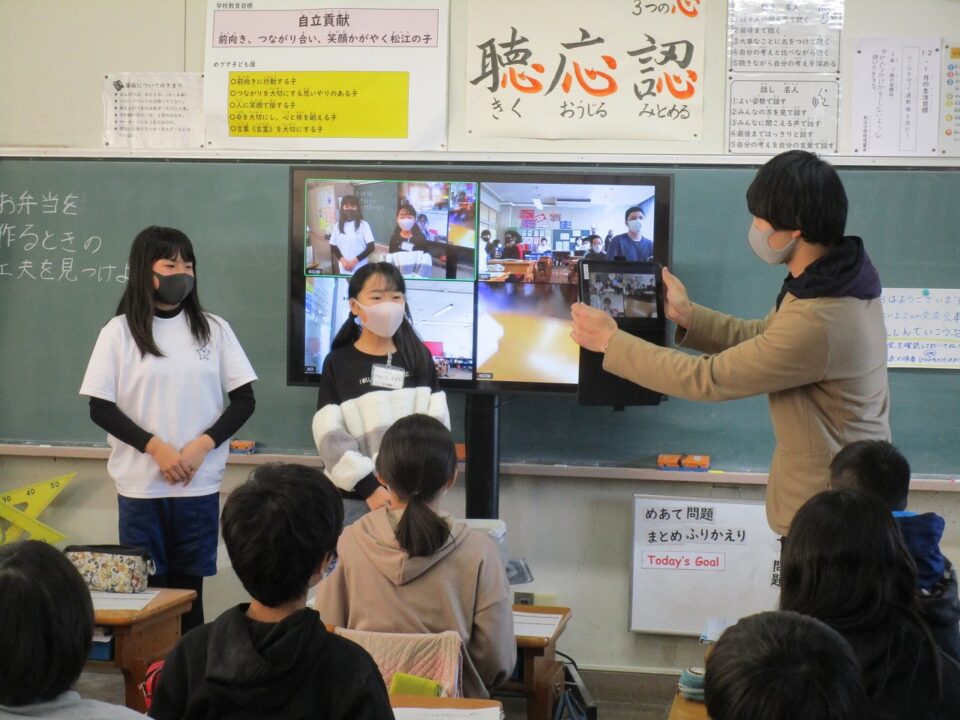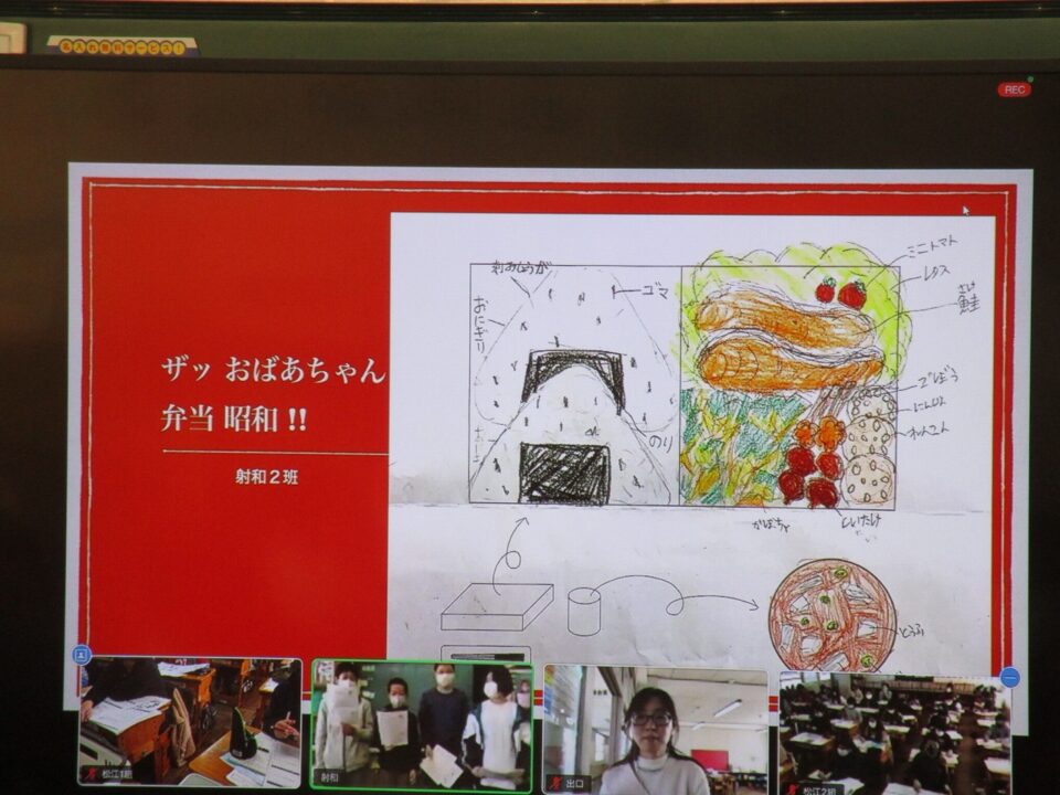 3限めと4限めの家庭科の時間に松江小6年生2クラスと射和小6年生の子たちの3クラス合同プレゼンテーションをZoomを使って行いました。
