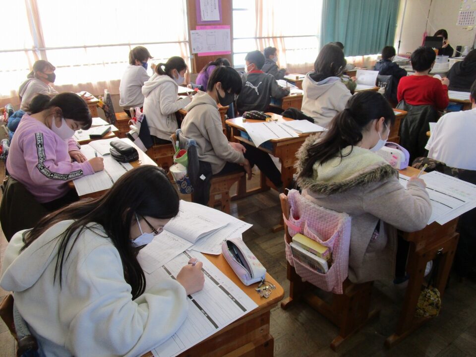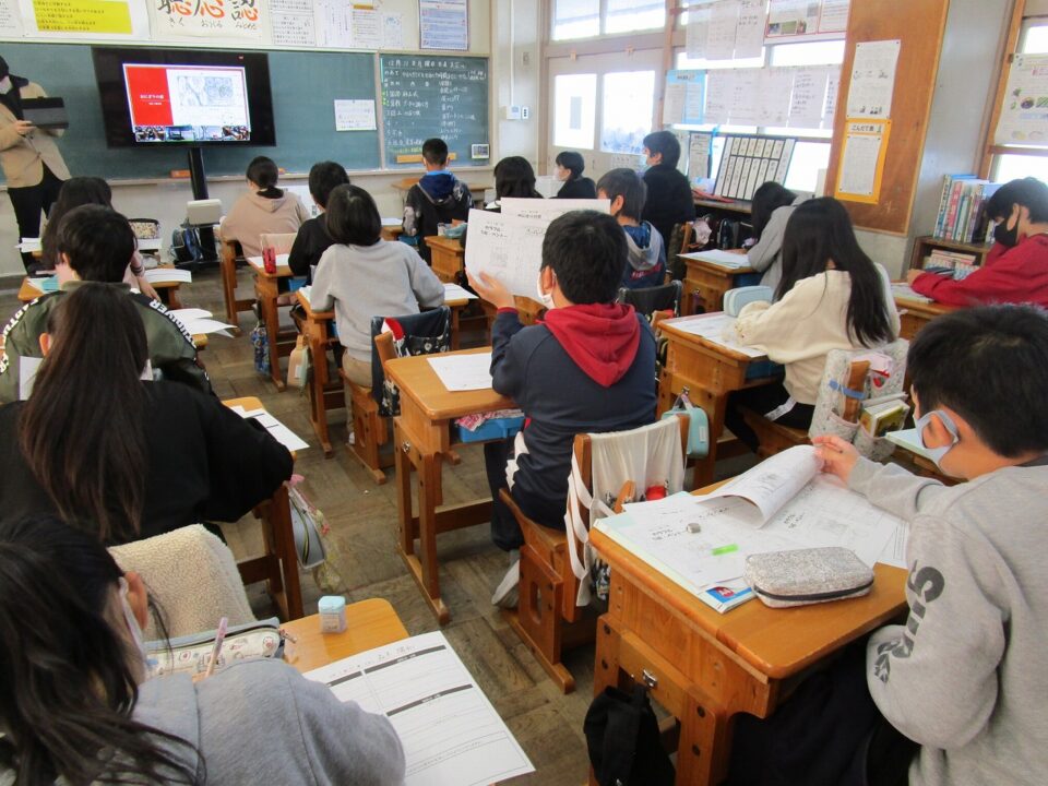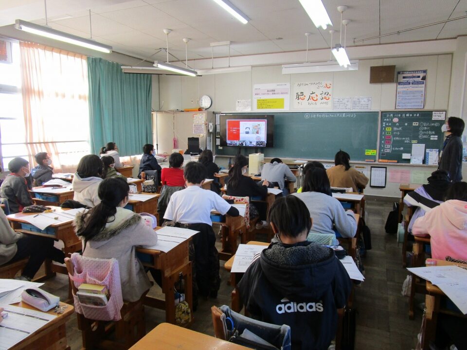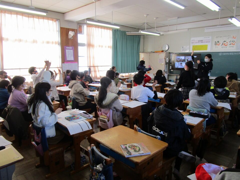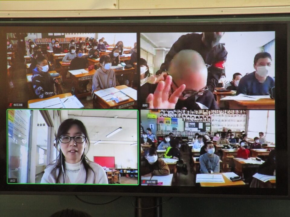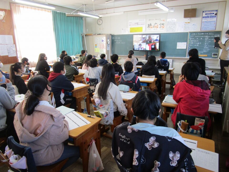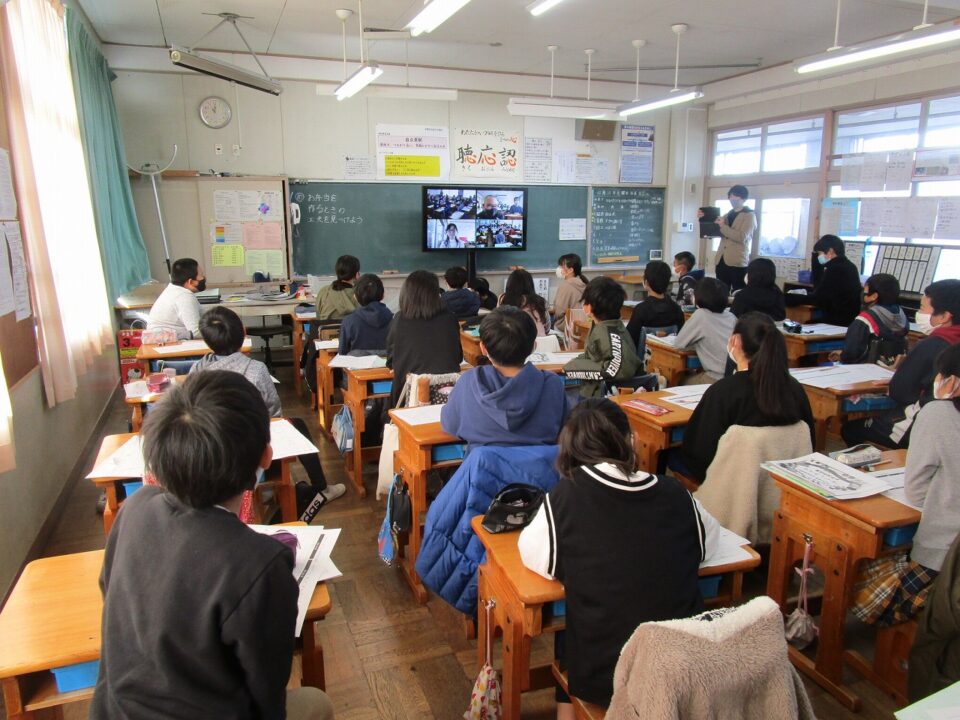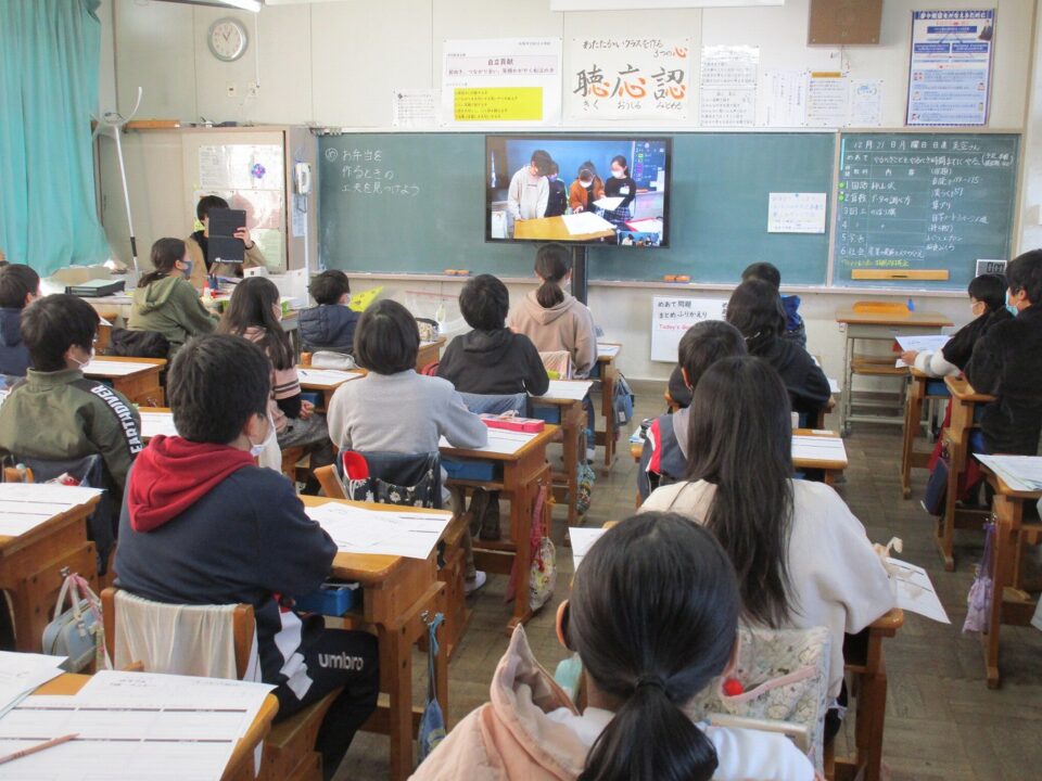 3限めと4限めの家庭科の時間に松江小6年生2クラスと射和小6年生の子たちの3クラス合同プレゼンテーションをZoomを使って行いました。