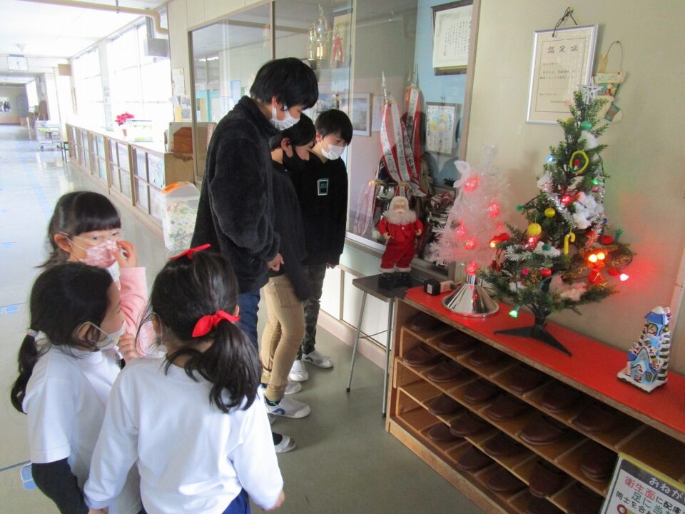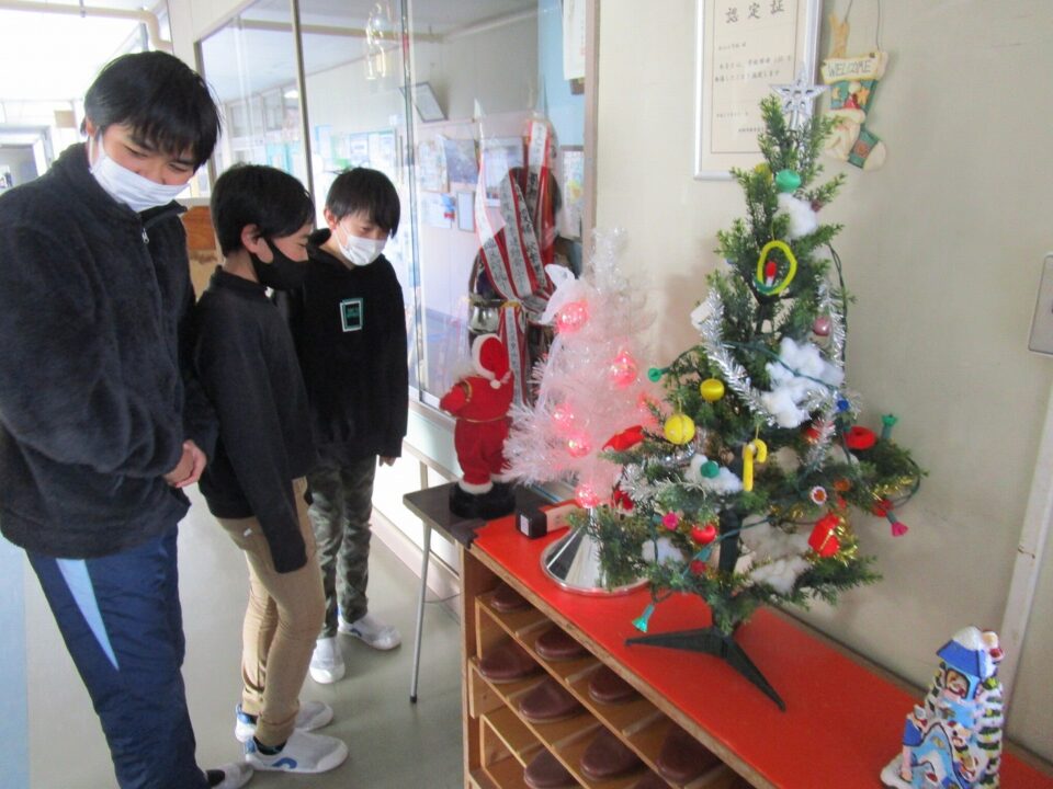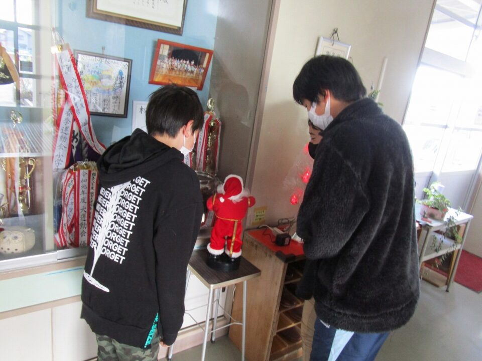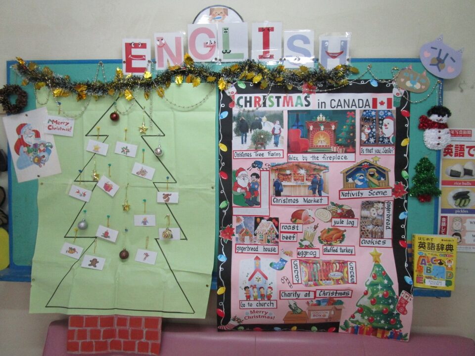 英語えいごボードなどは、クリスマス仕様しようになっていますよ。