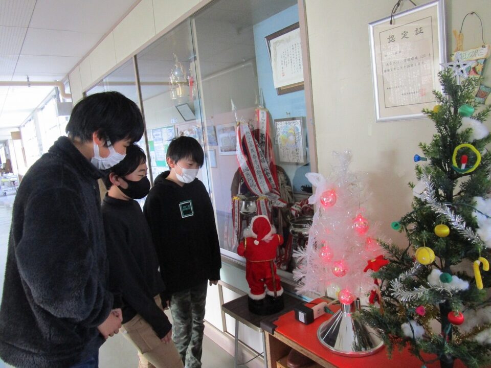 児童会作成じどうかいさくせい交通安全こうつうあんぜんのぼりばた優秀賞ゆうしゅうしょう / クリスマス仕様しよう