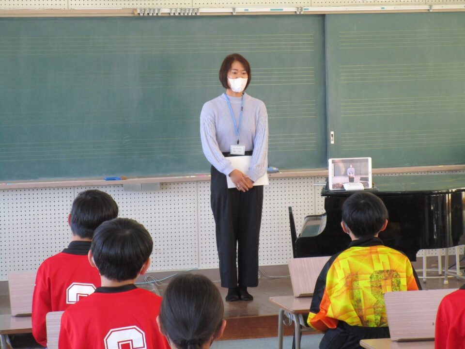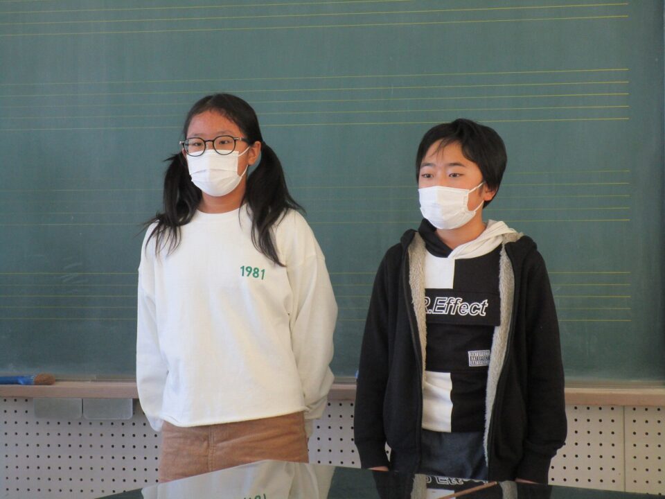 そして、着任ちゃくにんのあいさつで、松本まつもと 千紗子先生ちさこせんせいほり 昭寿先生あきとしせんせいからあいさつがありました。お二人ふたりは3年前ねんまえ松江小まつえしょうにいらっしゃったので、4年生以上ねんせいいじょうおぼえているかもしれませんね。