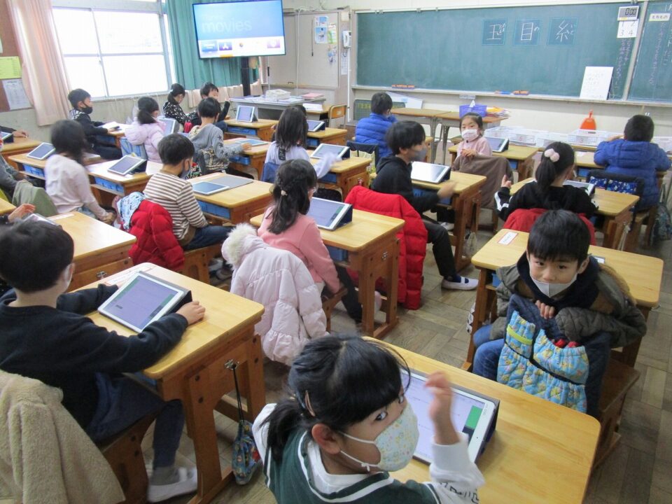 わたしの方から全校のみんなに向けて、「ルールを守って、学習や運動などに使いましょう。調べたいことがあればどんどんIPadで調べることができます。ルールを1月~3月の間に覚えて、4月から家に持ち帰ることもできます。どんどん使ってください。」と伝えました。